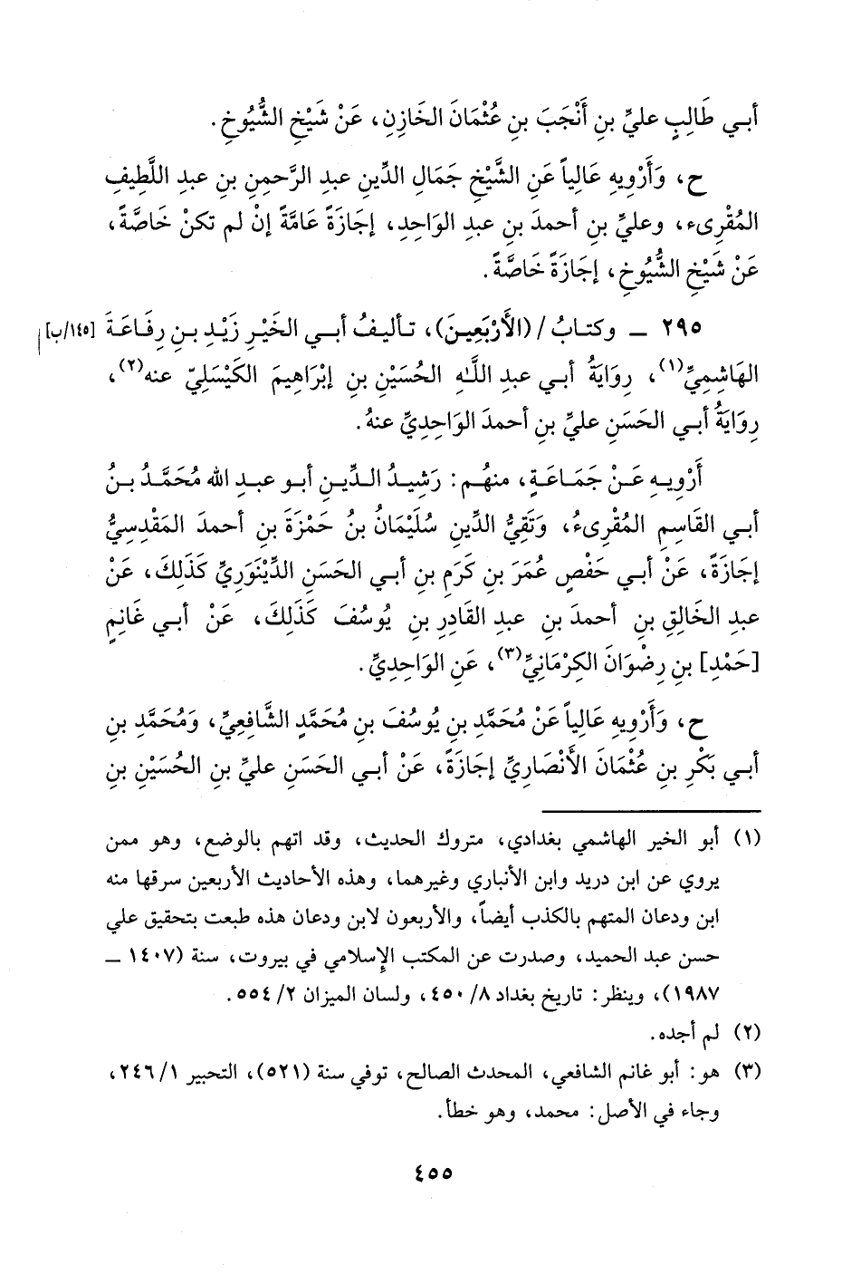 295- وكتاب (الأربعين) ، تأليف أبي الخير زيد بن رفاعة الهاشمي، رواية أبي عبد الله الحسين بن إبراهيم الكيسلي عنه، رواية أبي الحسن علي بن أحمد الواحدي عنه.