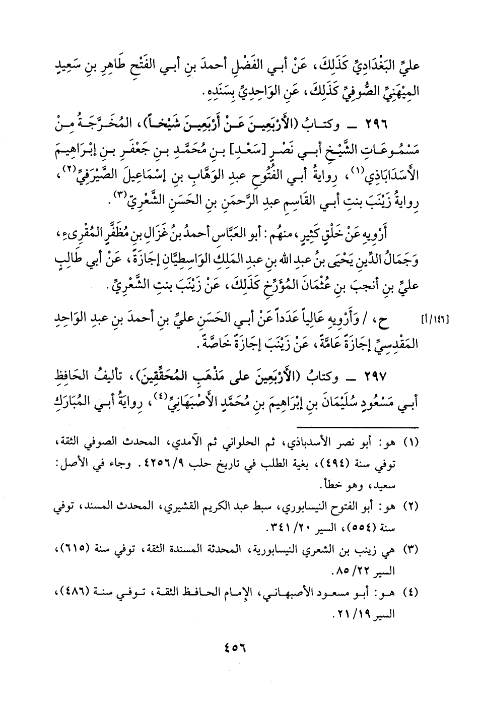 296- وكتاب (الأربعين عن أربعين شيخاً) ، المخرجة من مسموعات الشيخ أبي نصر [سعدٍ] بن محمد بن جعفر بن إبراهيم الأسداباذي، رواية أبي الفتوح عبد الوهاب بن إسماعيل الصيرفي، رواية زينب بنت أبي القاسم عبد الرحمن بن الحسن الشعري.