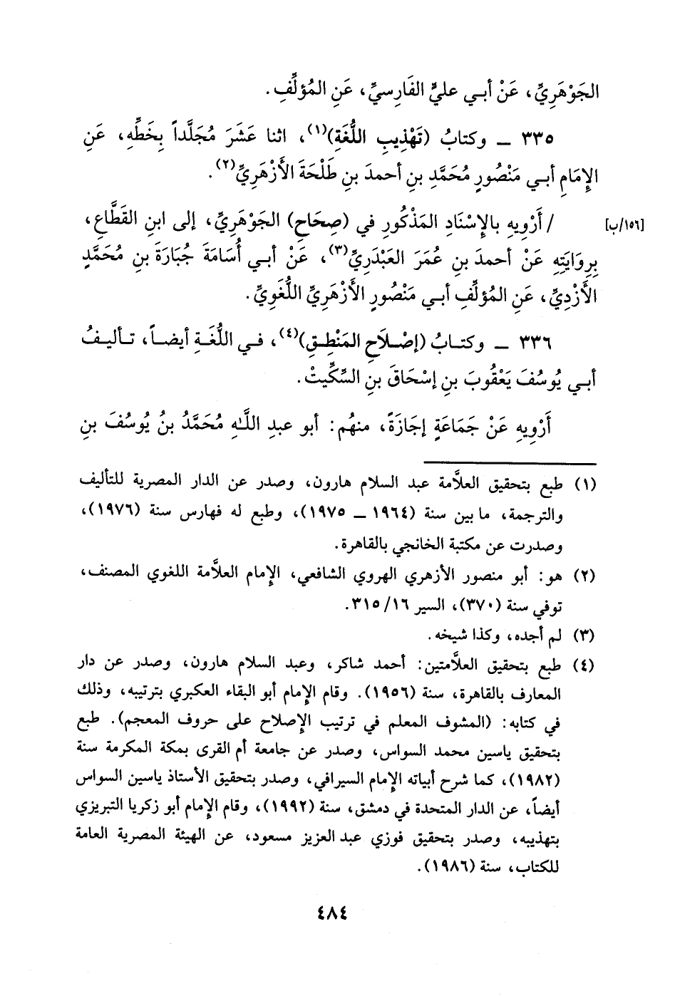 الجوهري، عن أبي علي الفارسي، عن المؤلف.