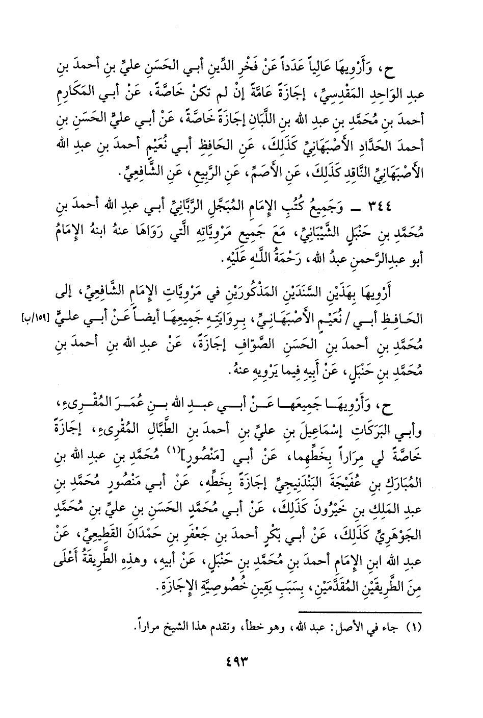 344- وجميع كتب الإمام المبجل الرباني أبي عبد الله أحمد بن محمد بن حنبل الشيباني، مع جميع مروياته التي رواها عنه ابنه الإمام أبو عبد الرحمن عبد الله، رحمة الله عليه.