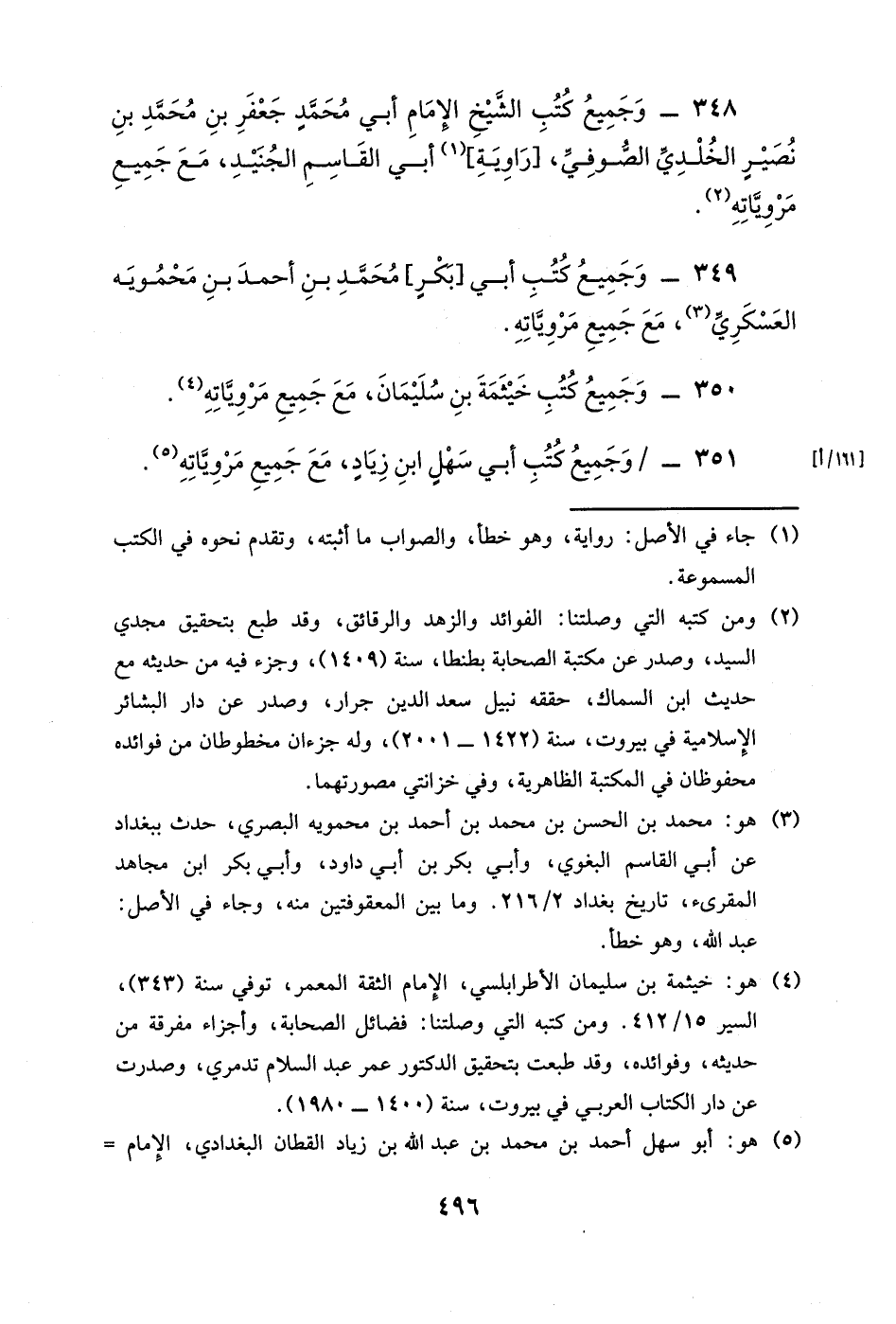 348- وجميع كتب الشيخ الإمام أبي محمد جعفر بن محمد بن نصير الخلدي الصوفي، [رواية] ، أبي القاسم الجنيد، مع جميع مروياته.