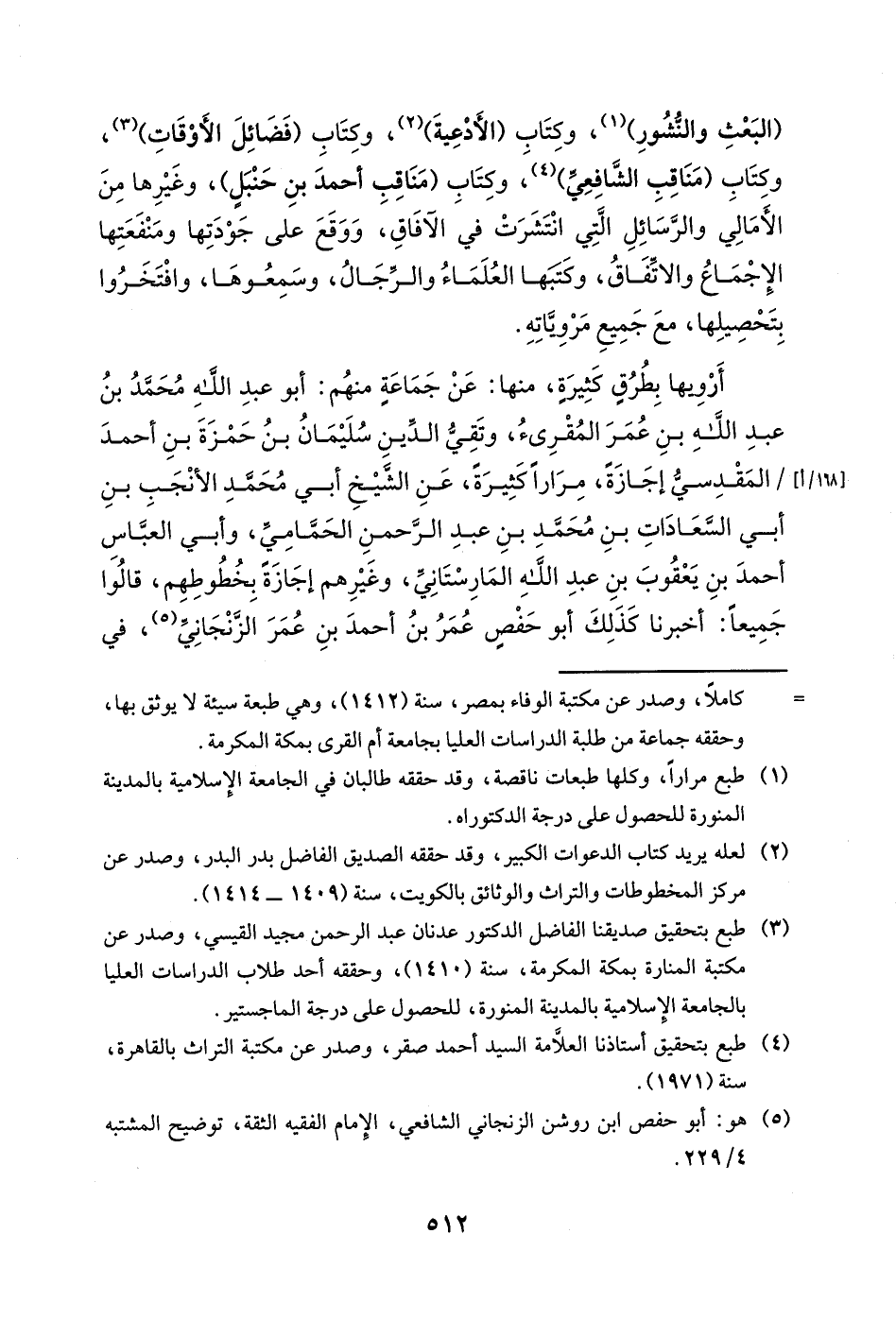 أرويها بطرقٍ كثيرةٍ، منها: عن جماعةٍ منهم: أبو عبد الله محمد بن عبد الله بن عمر المقرئ، وتقي الدين سليمان بن حمزة بن أحمد المقدسي إجازةً، مراراً كثيرةً، عن الشيخ أبي محمد الأنجب بن أبي السعادات بن محمد بن عبد الرحمن الحمامي، وأبي العباس أحمد بن يعقوب بن عبد الله المارستاني، وغيرهم إجازةً بخطوطهم، قالوا جميعاً: أخبرنا كذلك أبو حفصٍ عمر بن أحمد بن عمر الزنجاني، في