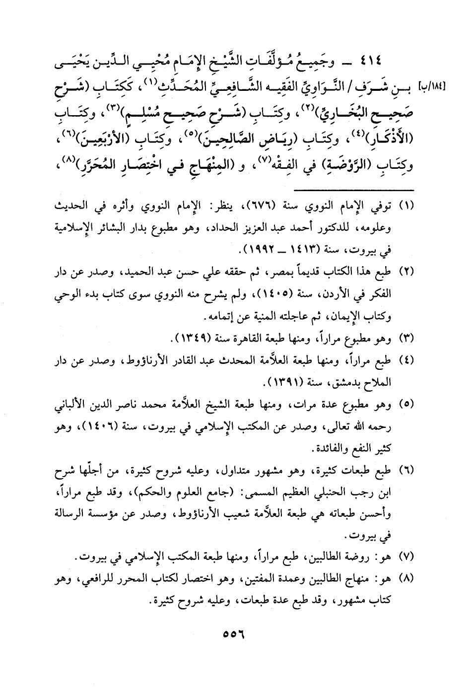 414- وجميع مؤلفات الشيخ الإمام محيي الدين يحيى بن شرف النواوي الفقيه الشافعي المحدث، ككتاب (شرح صحيح البخاري) ، وكتاب (شرح صحيح مسلم) ، وكتاب (الأذكار) ، وكتاب (رياض الصالحين) ، وكتاب (الأربعين) ، وكتاب (الروضة) في الفقه، و (المنهاج في اختصار المحرر) ،