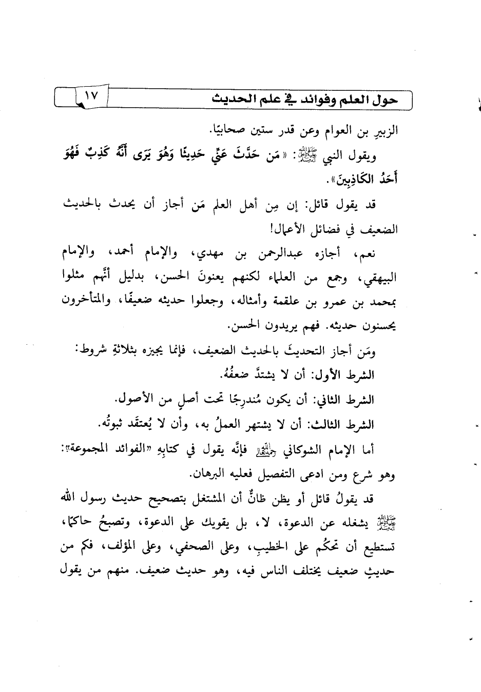 ومن أجاز التحديث بالحديث الضعيف, فإنما يجيزه بثلاثة شروط: