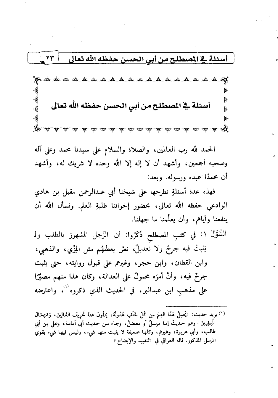 أسئلة في المصطلح من أبي الحسن حفظه الله تعالى