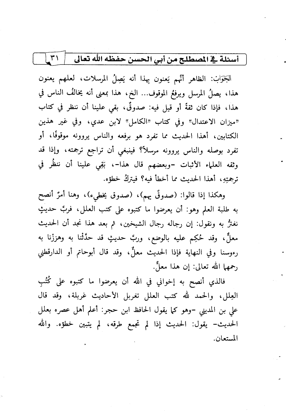 الجواب: الظاهر أنّهم يعنون بهذا أنه يصل المرسلات، لعلهم يعنون هذا، يصل المرسل ويرفع الموقوف ... الخ، هذا بمعنى أنه يخالف الناس في هذا، فإذا كان ثقةً أو قيل فيه: صدوق، بقي علينا أن ننظر في كتاب "ميزان الاعتدال" وفي كتاب "الكامل" لابن عدي، وفي غير هذين الكتابين، أهذا الحديث مما تفرد هو برفعه والناس يروونه موقوفًا، أو تفرد بوصله والناس يروونه مرسلاً؟ فينبغي أن تراجع ترجمته، وإذا قد وثقه العلماء الأثبات -وبعضهم قال هذا-، بقي علينا أن ننظر في ترجمته، أهذا الحديث مما أخطأ فيه؟ فيترك خطؤه، وهكذا إذا قالوا: صدوق يهم، صدوق يخطيء، وهنا أمر أنصح به طلبة العلم وهو: أن يعرضوا ما كتبوه على كتب العلل، فربّ حديث نغترّ به ونقول: إن رجاله رجال الشيخين، ثم بعد هذا نجد أن الحديث معل، وقد حكم عليه بالوضع، وربّ حديث قد حدّثْنا به وهززْنا به رؤوسنا وفي النهاية فإذا الحديث معل، وقد قال أبوحاتم أو الدارقطني رحمهما الله تعالى: إن هذا معل، فالذي أنصح به إخواني في الله أن يعرضوا ما كتبوه على كتب العلل، والحمد لله كتب العلل تغربل الأحاديث غربلة، وقد قال علي بن المديني -وهو كما يقول الحافظ ابن حجر: أعلم أهل عصره بعلل الحديث- يقول: الحديث إذا لم تجمع طرقه، لم يتبين خطؤه. والله المستعان.