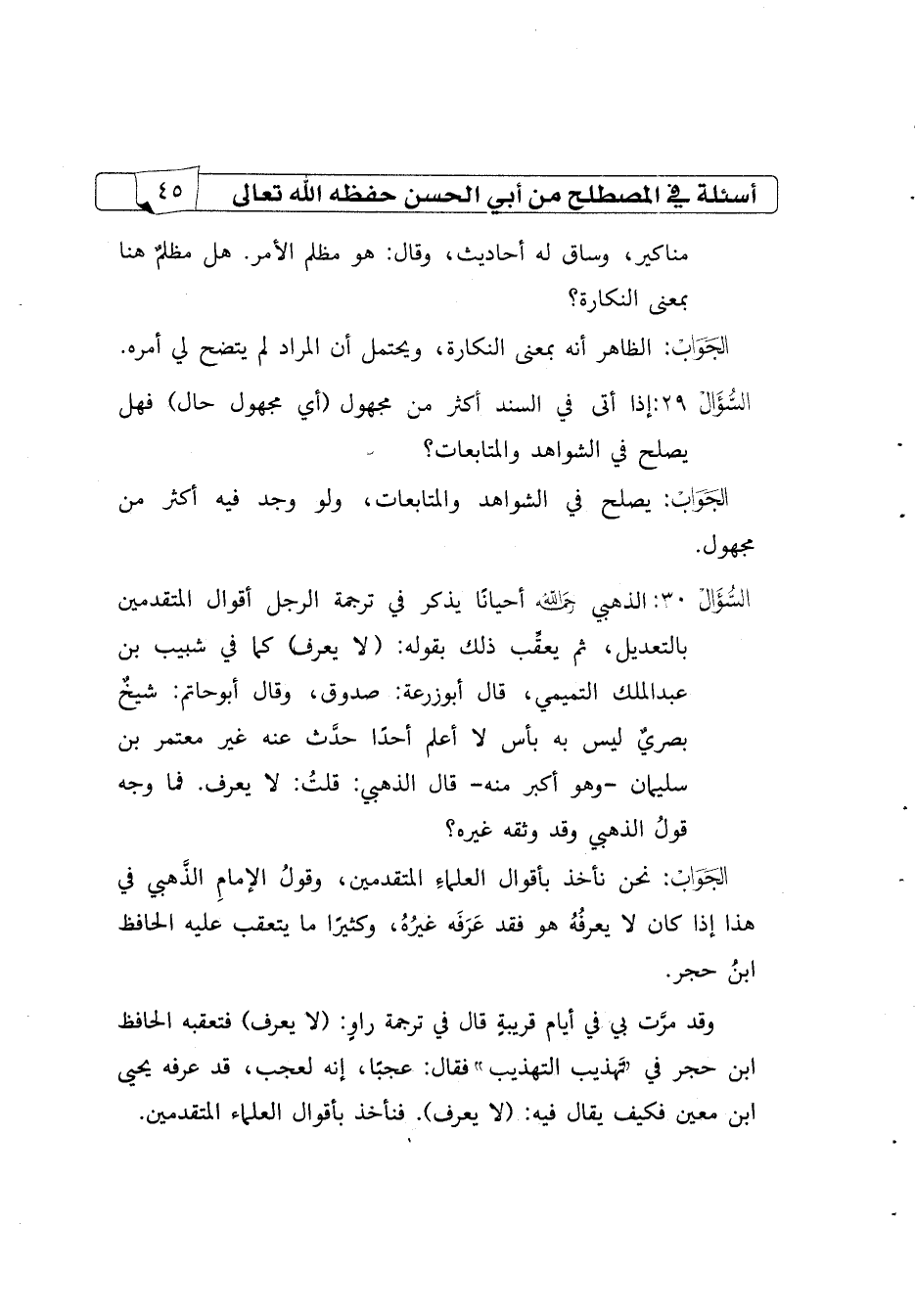 السؤال30 إذا أتى في السند أكثر من مجهول (أي مجهول حال) فهل يصلح في الشواهد والمتابعات؟