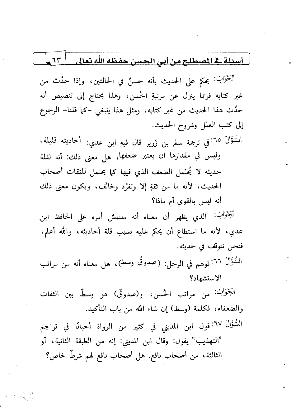 السؤال67 قولهم في الرجل: (صدوق وسط)، هل معناه أنه من مراتب الاستشهاد؟