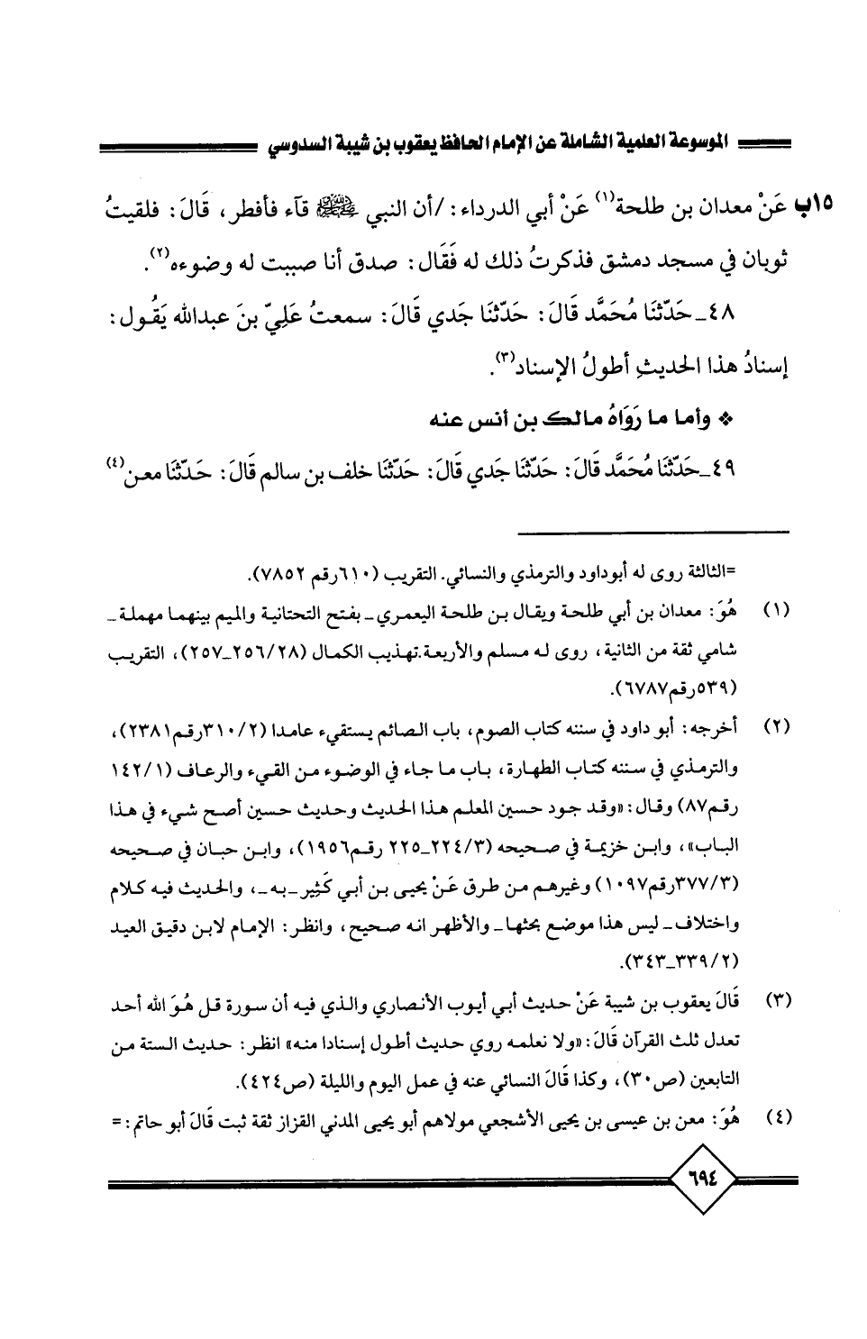 49 - حَدَّثَنَا مُحَمَّدُ، قَالَ: حَدَّثَنَا جَدِّي قَالَ: حَدَّثَنَا خَلَفُ بْنُ سَالِمٍ، قَالَ: حَدَّثَنَا مَعْنٌ، قَالَ: حَدَّثَنَا مَالِكٌ، قَالَ: حَدَّثَنِي ذَاكَ الأَوْزَاعِيُّ، عَنِ الزُّهْرِيِّ، عَنْ