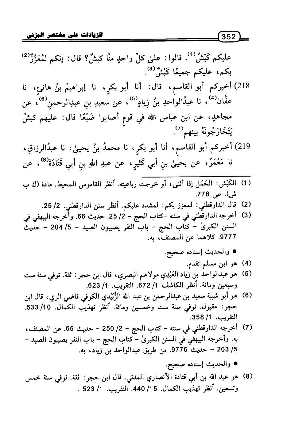 218 - أَخْبَرَكُمْ أَبُو الْقَاسِمِ، قَالَ: أنا أَبُو بَكْرٍ، نا إِبْرَاهِيمُ بْنُ هَانِئٍ، نا عَفَّانُ، نا عَبْدُ الْوَاحِدِ بْنُ زِيَادٍ، عَنْ سَعِيدِ بْنِ عَبْدِ الرَّحْمَنِ، عَنْ مُجَاهِدٍ، عَنِ ابْنِ عَبَّاسٍ رَضِيَ اللَّهُ عَنْهُ فِي قَوْمٍ أَصَابُوا ضَبُعًا قَالَ: عَلَيْهِمْ كَبْشٌ يَتَخَارَجُونَهُ بَيْنَهُمْ
