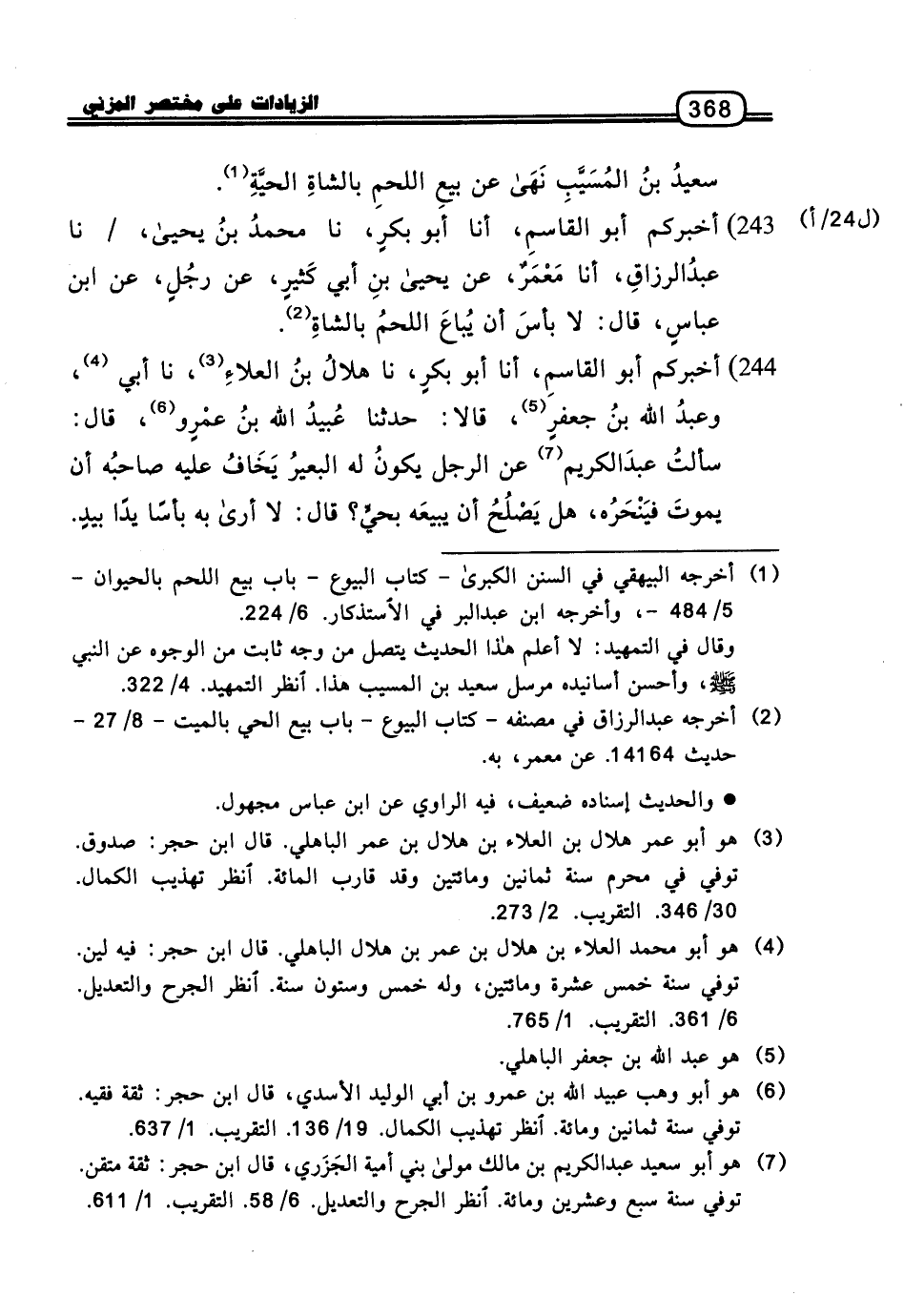 243 - أَخْبَرَكُمْ أَبُو الْقَاسِمِ، أنا أَبُو بَكْرٍ، نا مُحَمَّدُ بْنُ يَحْيَى، نا عَبْدُ الرَّزَّاقِ، أنا مَعْمَرٌ، عَنْ يَحْيَى بْنِ أَبِي كَثِيرٍ، عَنْ رَجُلٍ، عَنِ ابْنِ عَبَّاسٍ، قَالَ: لا بَأْسَ أَنْ يُبَاعَ اللَّحْمُ بِالشَّاةِ