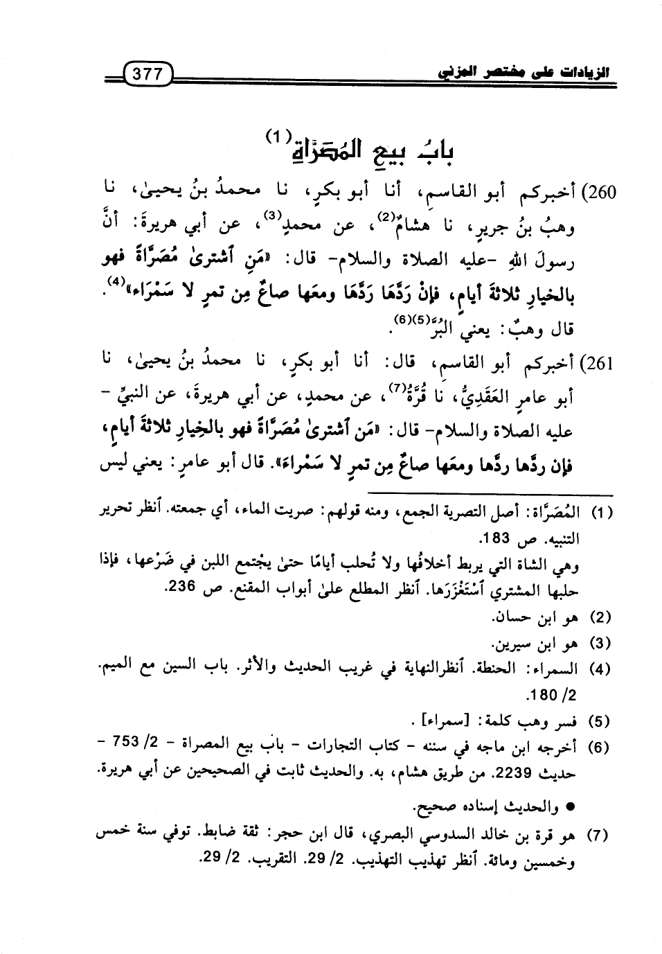 260 - أَخْبَرَكُمْ أَبُو الْقَاسِمِ، أنا أَبُو بَكْرٍ، نا مُحَمَّدُ بْنُ يَحْيَى، نا وَهْبُ بْنُ جَرِيرٍ، نا هِشَامٌ، عَنْ مُحَمَّدٍ، عَنْ أَبِي هُرَيْرَةَ: أَنَّ رَسُولَ اللَّهِ، عَلَيْهِ الصَّلاةُ وَالسَّلامُ، قَالَ: «مَنِ اشْتَرَى مُصَرَّاةً فَهُوَ بِالْخِيَارِ ثَلاثَةَ أَيَّامٍ، فَإِنْ رَدَّهَا رَدَّهَا وَمَعَهَا صَاعٌ مِنْ تَمْرٍ لا سَمْرَاءَ» .
