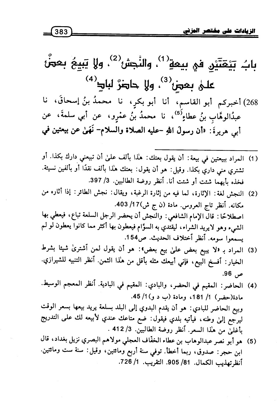 بَابُ بَيْعَتَيْنِ فِي بَيْعَهٍ، وَالنَّجَشِ، وَلا يَبِيعُ بَعْضٌ عَلَى بَعْضٍ، وَلا حَاضِرٌ لِبَادٍ