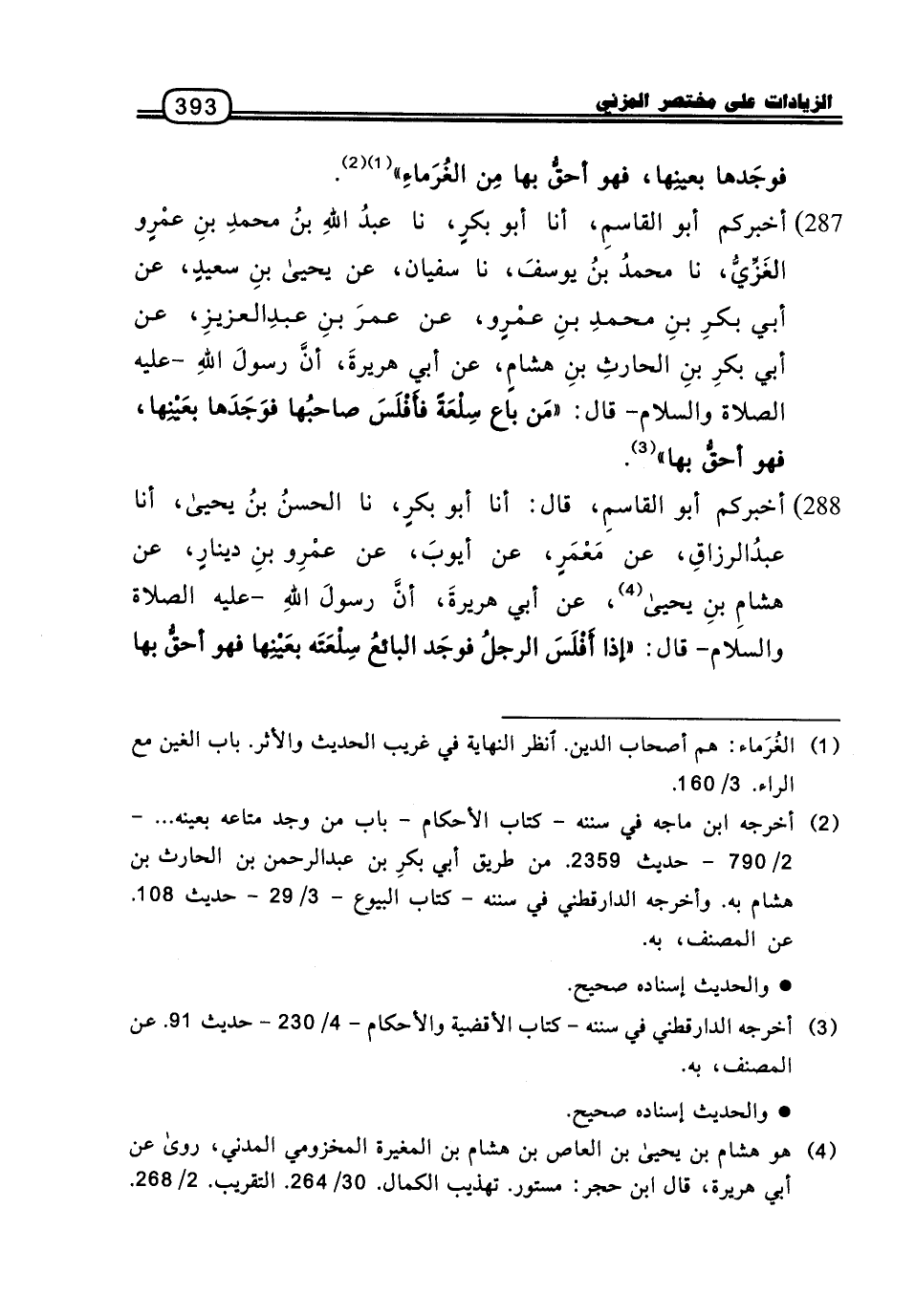 287 - أَخْبَرَكُمْ أَبُو الْقَاسِمِ، أنا أَبُو بَكْرٍ، نا عَبْدُ اللَّهِ بْنُ مُحَمَّدِ بْنِ عَمْرٍو الْغَزِّيُّ، نا مُحَمَّدُ بْنُ يُوسُفَ، نا سُفْيَانُ، عَنْ يَحْيَى بْنِ سَعِيدٍ، عَنْ أَبِي بَكْرِ بْنِ مُحَمَّدِ بْنِ عَمْرٍو، عَنْ عُمَرَ بْنِ عَبْدِ الْعَزِيزِ، عَنْ أَبِي بَكْرِ بْنِ الْحَارِثِ بْنِ هِشَامٍ، عَنْ أَبِي هُرَيْرَةَ، أَنَّ رَسُولَ اللَّهِ، عَلَيْهِ الصَّلاةُ وَالسَّلامُ، قَالَ: «مَنْ بَاعَ سِلْعَةً فَأَفْلَسَ صَاحِبُهَا فَوَجَدَهَا بِعَيْنِهَا، فَهُوَ أَحَقُّ بِهَا»