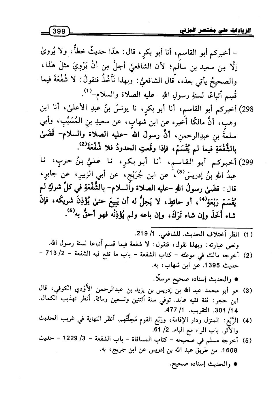 298 - أَخْبَرَكُمْ أَبُو الْقَاسِمِ، أنا أَبُو بَكْرٍ، نا يُونُسُ بْنُ عَبْدِ الأَعْلَى، أنا ابْنُ وَهْبٍ، أَنَّ مَالِكًا أَخْبَرَهُ عَنِ ابْنِ شِهَابٍ، عَنْ سَعِيدِ بْنِ الْمُسَيِّبِ، وَأَبِي سَلَمَةَ بْنِ عَبْدِ الرَّحْمَنِ، أَنَّ رَسُولَ اللَّهِ، عَلَيْهِ الصَّلاةُ وَالسَّلامُ، قَضَى بِالشُّفْعَةِ فِيمَا لَمْ يُقْسَمْ، فَإِذَا وَقَعَتِ الْحُدُودُ فَلا شُفْعَةَ