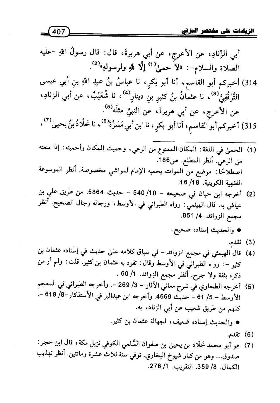 أَبِي الزِّنَادِ، عَنِ الأَعْرَجِ، عَنْ أَبِي هُرَيْرَةَ، قَالَ: قَالَ رَسُولُ اللَّهِ، عَلَيْهِ الصَّلاةُ وَالسَّلامُ: «لا حِمَى إِلا للَّهِ وَلِرَسُولِهِ» .