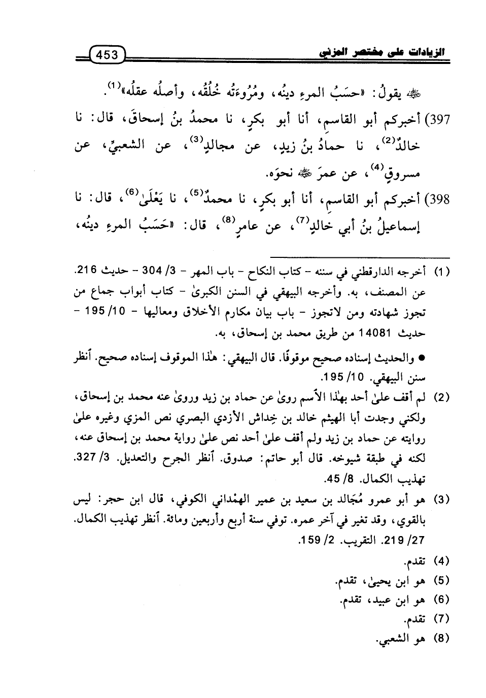 397 - أَخْبَرَكُمْ أَبُو الْقَاسِمِ، أنا أَبُو بَكْرٍ، نا مُحَمَّدُ بْنُ إِسْحَاقَ، قَالَ: نا خَالِدٌ، نا حَمَّادُ بْنُ زَيْدٍ، عَنْ مُجَالِدٍ، عَنِ الشَّعْبِيِّ، عَنْ مَسْرُوقٍ، عَنْ عُمَرَ رَضِيَ اللَّهُ عَنْهُ نَحْوَهُ