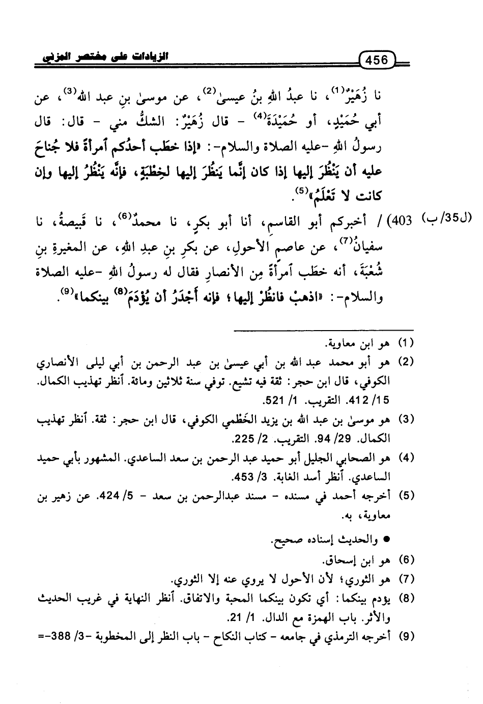 نا زُهَيْرٌ، نا عَبْدُ اللَّهِ بْنُ عِيسَى، عَنْ مُوسَى بْنِ عَبْدِ اللَّهِ، عَنْ أَبِي حُمَيْدٍ، أَوْ حُمَيْدَةَ، قَالَ زُهَيْرٌ: الشَّكُّ مِنِّي، قَالَ: قَالَ رَسُولُ اللَّهِ، عَلَيْهِ الصَّلاةُ وَالسَّلامُ: «إِذَا خَطَبَ أَحَدُكُمُ امْرَأَةً فَلا جُنَاحَ عَلَيْهِ أَنْ يَنْظُرَ إِلَيْهَا إِذَا كَانَ، إِنَّمَا يَنْظُرُ إِلَيْهَا لِخِطْبَةٍ، فَإِنَّهُ يَنْظُرُ إِلَيْهَا وَإِنْ كَانَتْ لا تَعْلَمُ»