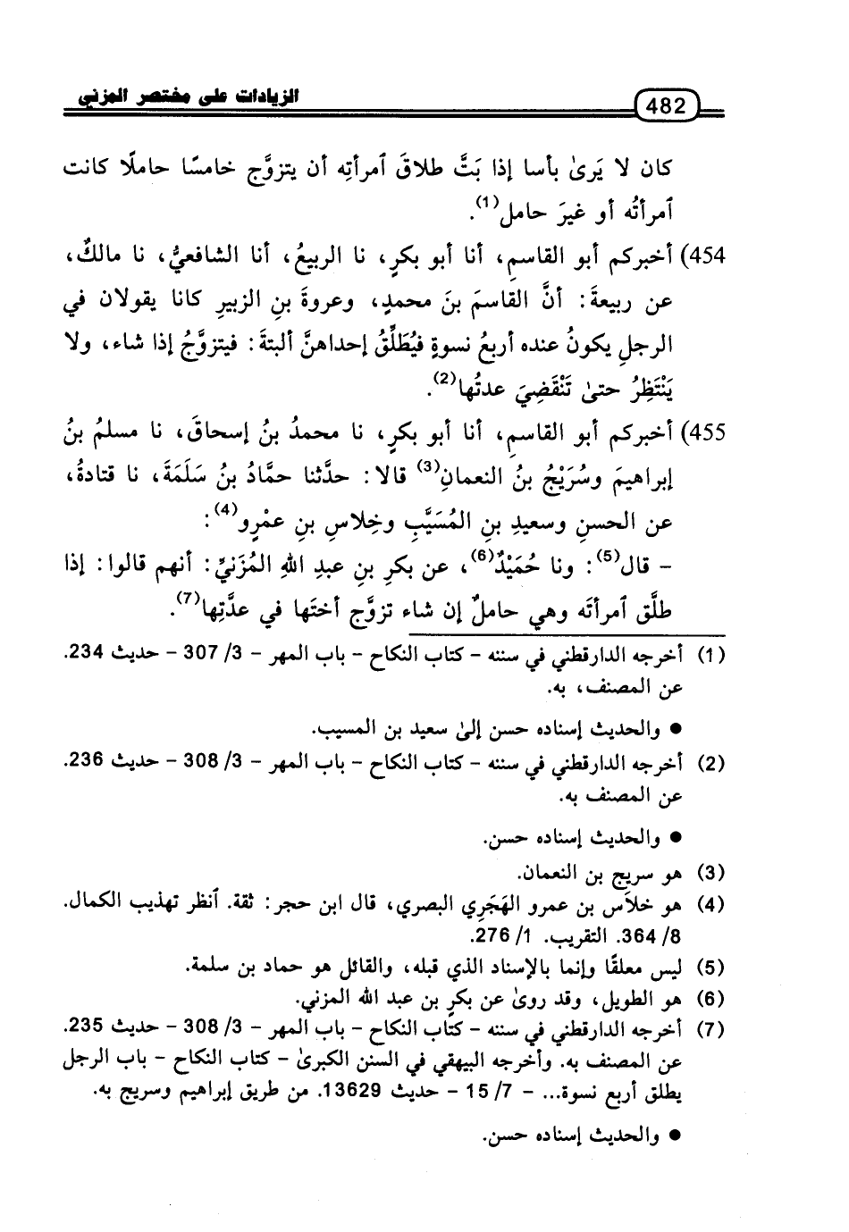 455 - أَخْبَرَكُمْ أَبُو الْقَاسِمِ، أنا أَبُو بَكْرٍ، نا مُحَمَّدُ بْنُ إِسْحَاقَ، نا مُسْلِمُ بْنُ إِبْرَاهِيمَ وَسُرَيْجُ بْنُ النُّعْمَانِ، قَالا: حَدَّثَنَا حَمَّادُ بْنُ سَلَمَةَ، نا قَتَادَةُ، عَنِ الْحَسَنِ وَسَعِيدِ بْنِ الْمُسَيِّبِ وَخِلاسِ بْنِ عَمْرٍو:، قَالَ: وَنا حُمَيْدٌ، عَنْ بَكْرِ بْنِ عَبْدِ اللَّهِ الْمُزَنِيِّ: أَنَّهُمْ قَالُوا: إِذَا طَلَّقَ امْرَأَتَهُ وَهِيَ حَامِلٌ إِنْ شَاءَ تَزَوَّجَ أُخْتَهَا فِي عِدَّتِهَا.