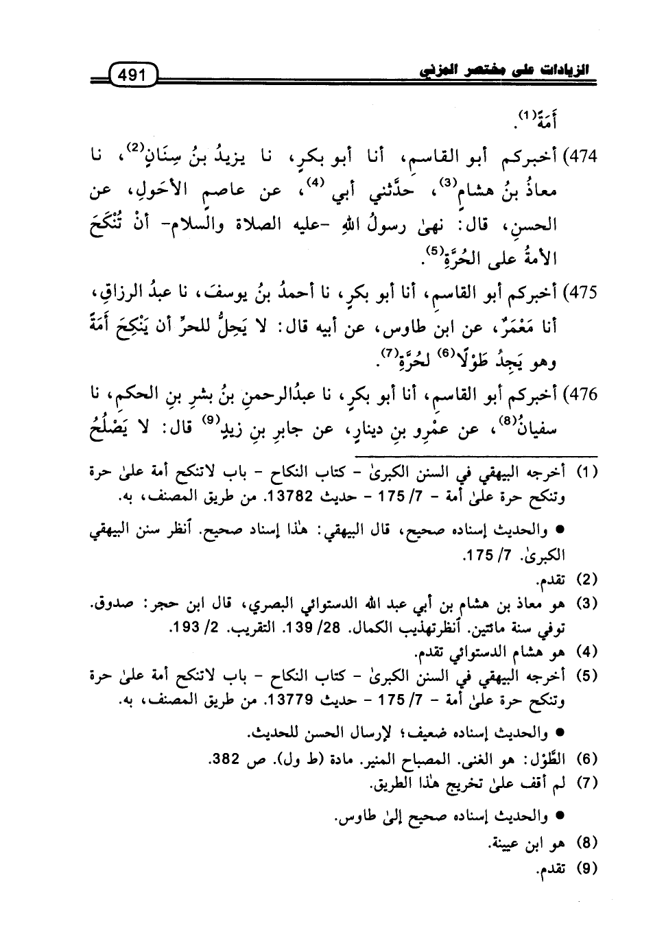 475 - أَخْبَرَكُمْ أَبُو الْقَاسِمِ، أنا أَبُو بَكْرٍ، نا أَحْمَدُ بْنُ يُوسُفَ، نا عَبْدُ الرَّزَّاقِ، أنا مَعْمَرٌ، عَنِ ابْنِ طَاوُسٍ، عَنْ أَبِيهِ، قَالَ: لا يَحِلُّ لِلْحُرِّ أَنْ يَنْكِحَ أَمَةً، وَهُوَ يَجِدُ طَوْلا لِحُرَّةٍ