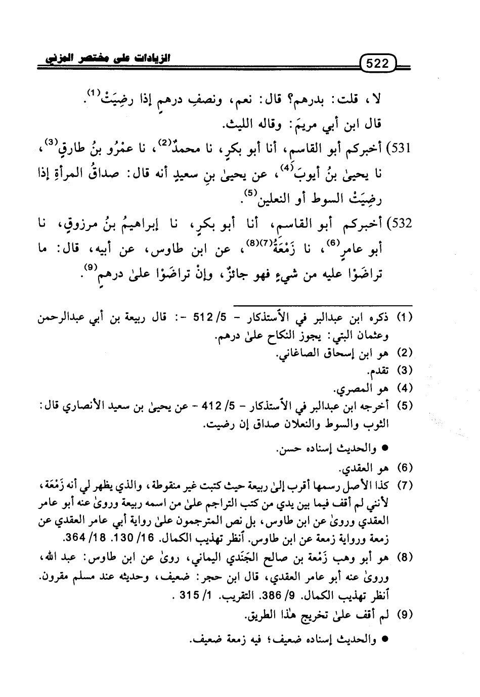 532 - أَخْبَرَكُمْ أَبُو الْقَاسِمِ، أنا أَبُو بَكْرٍ، نا إِبْرَاهِيمُ بْنُ مَرْزُوقٍ، نا أَبُو عَامِرٍ، نا زَمْعَةُ، عَنِ ابْنِ طَاوُسٍ، عَنْ أَبِيهِ، قَالَ: مَا تَرَاضَوْا عَلَيْهِ مِنْ شَيْءٍ فَهُوَ جَائِزٌ، وَإِنْ تَرَاضَوْا عَلَى دِرْهَمٍ