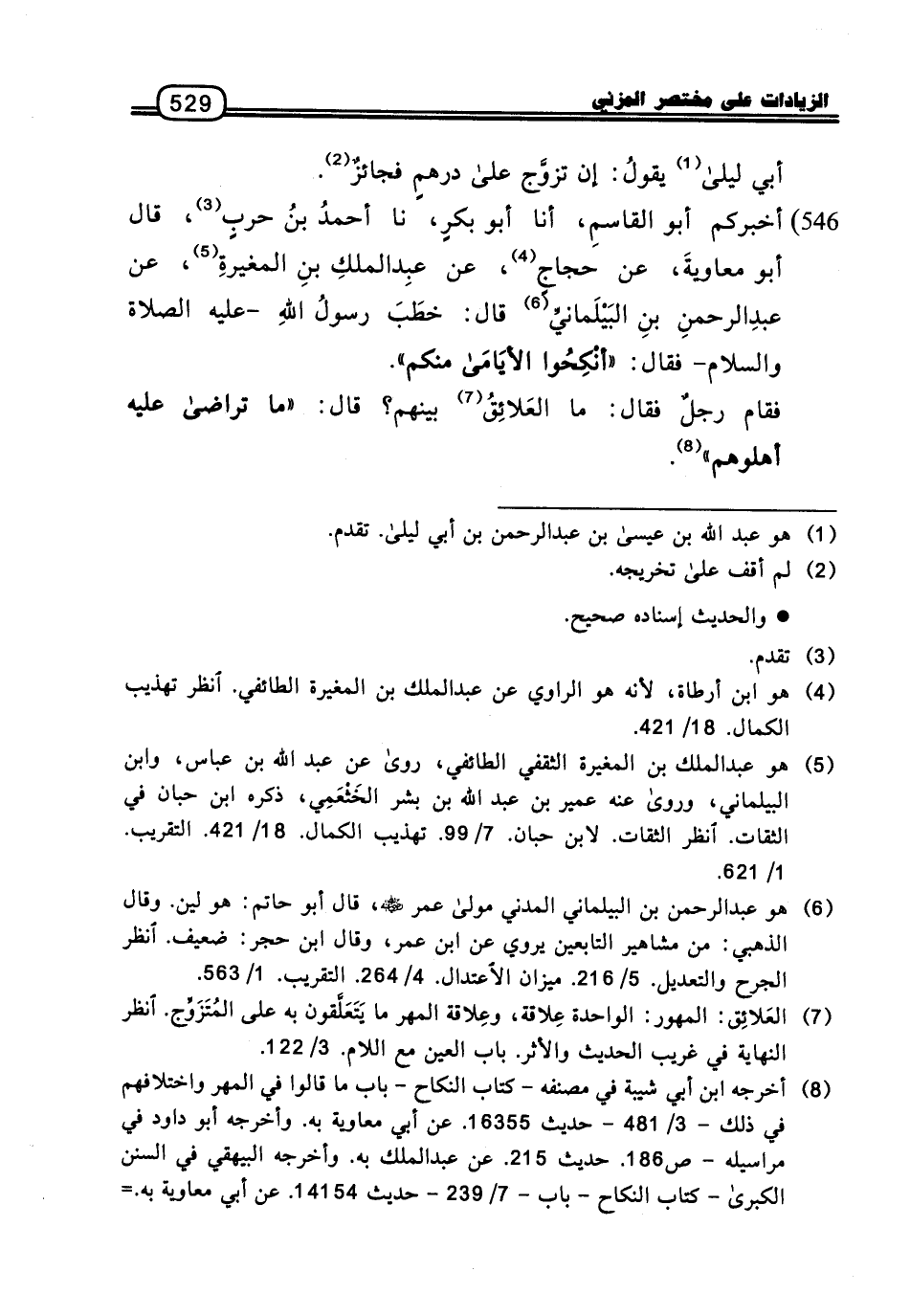 546 - أَخْبَرَكُمْ أَبُو الْقَاسِمِ، أنا أَبُو بَكْرٍ، نا أَحْمَدُ بْنُ حَرْبٍ، قَالَ أَبُو مُعَاوِيَةَ، عَنْ حَجَّاجٍ، عَنْ عَبْدِ الْمَلِكِ بْنِ الْمُغِيرَةِ، عَنْ عَبْدِ الرَّحْمَنِ بْنِ الْبَيْلَمَانِيِّ قَالَ: خَطَبَ رَسُولُ اللَّهِ، عَلَيْهِ الصَّلاةُ وَالسَّلامُ، فَقَالَ: «أَنْكِحُوا الأَيَامَى مِنْكُمْ» .