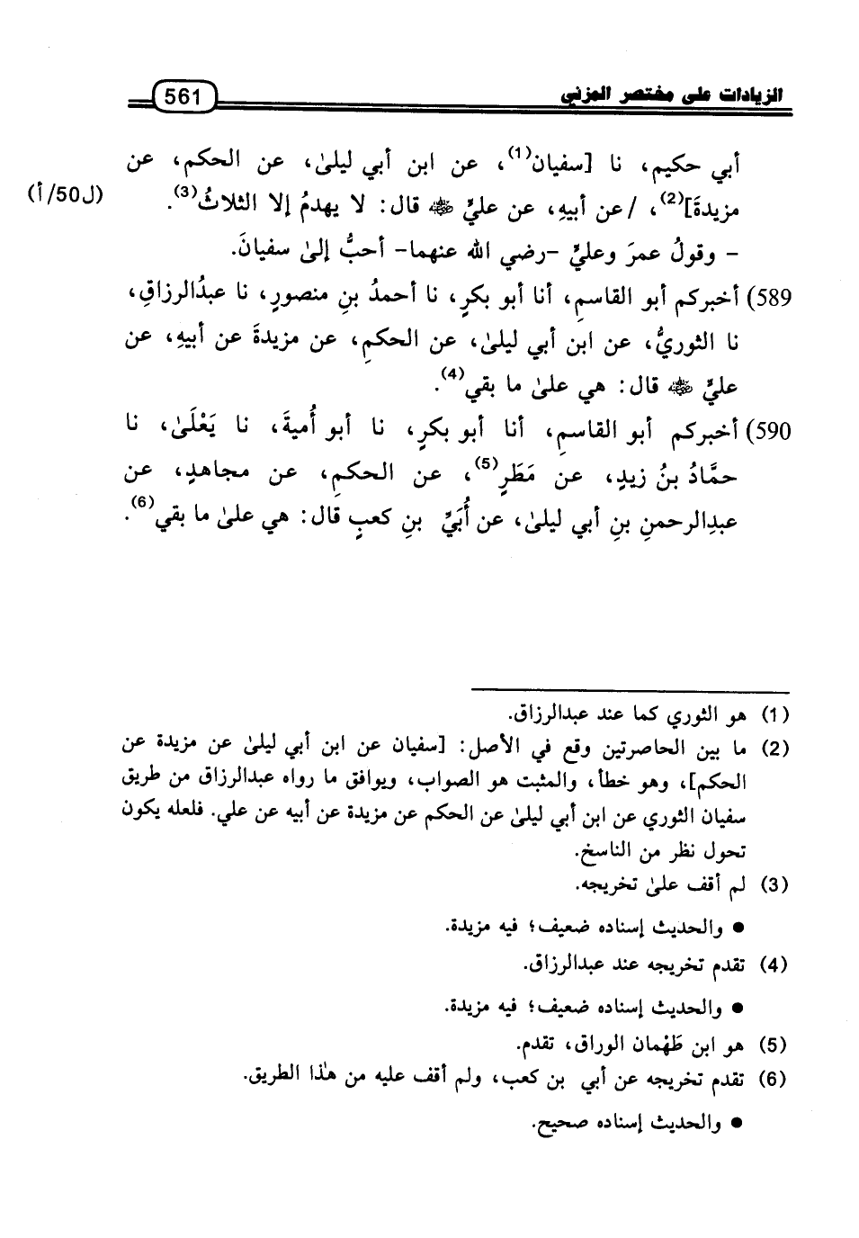 589 - أَخْبَرَكُمْ أَبُو الْقَاسِمِ، أنا أَبُو بَكْرٍ، نا أَحْمَدُ بْنُ مَنْصُورٍ، نا عَبْدُ الرَّزَّاقِ، نا الثَّوْرِيُّ، عَنِ ابْنِ أَبِي لَيْلَى، عَنِ الْحَكَمِ، عَنْ مَزْيَدَةَ، عَنْ أَبِيهِ، عَنْ عَلِيٍّ رَضِيَ اللَّهُ عَنْهُ قَالَ: هِيَ عَلَى مَا بَقِيَ.