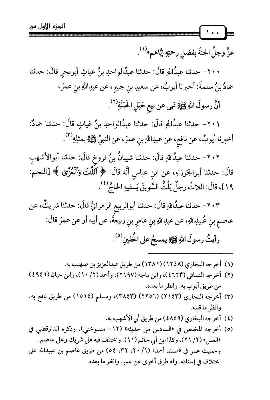 200 - حدثنا عبدُاللهِ قالَ: حدثنا عبدُالواحدِ بنُ غياثٍ أبوبحرٍ قالَ: حَدَّثَنَا حمادُ بنُ سلمةَ: أَخْبَرَنَا أيوبُ، عن سعيدِ بنِ جبيرٍ، عن عبدِاللهِ بنِ عمرَ،