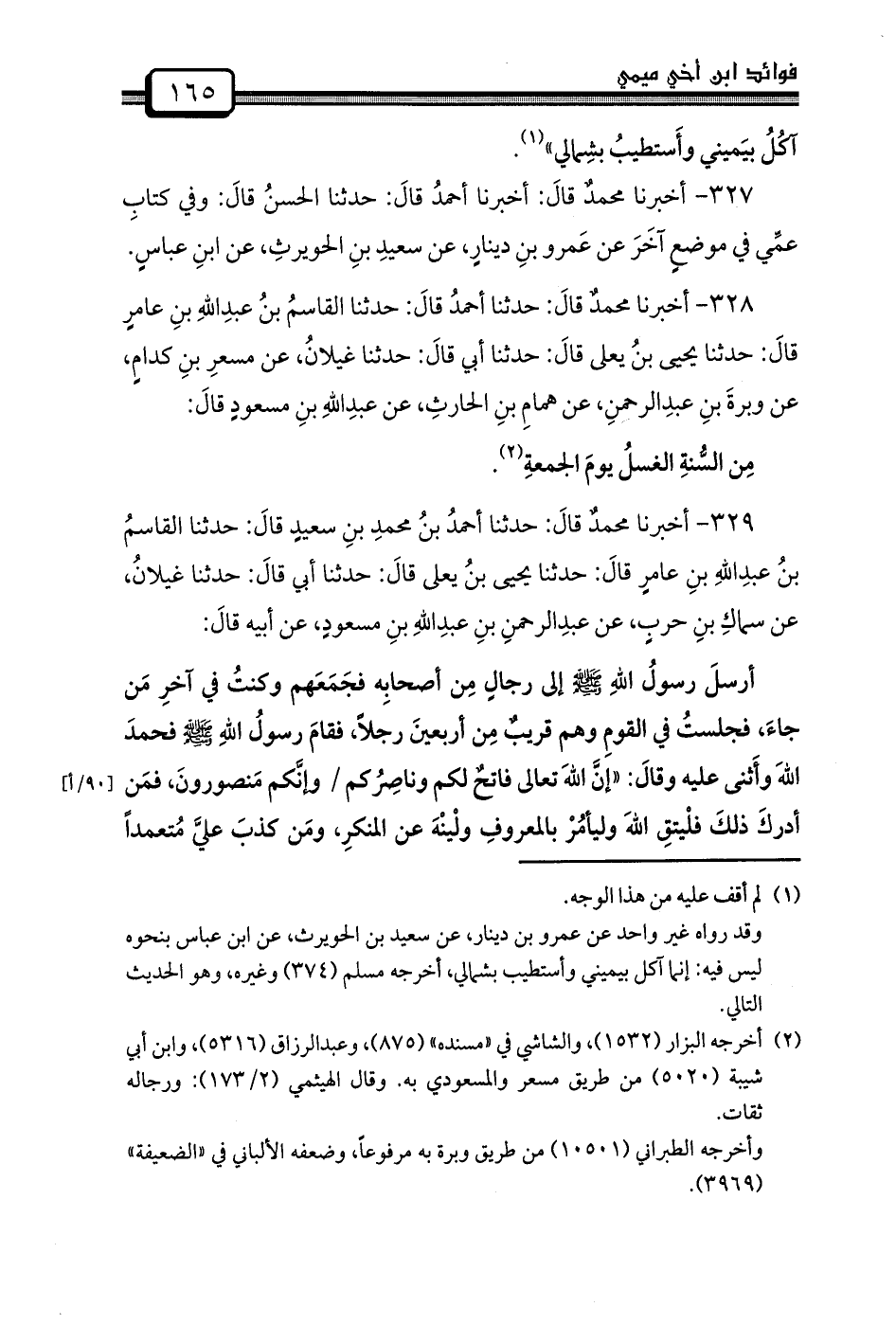 327 - أَخْبَرَنَا محمدٌ قالَ: أَخْبَرَنَا أحمدُ قالَ: حَدَّثَنَا الحسنُ قالَ: وَفِي كتابِ عمِّي فِي موضعٍ آخَرَ عَنْ عَمرو بنِ دينارٍ، عَنْ سعيدِ بنِ الحويرثِ، عَنِ ابنِ عباسٍ.