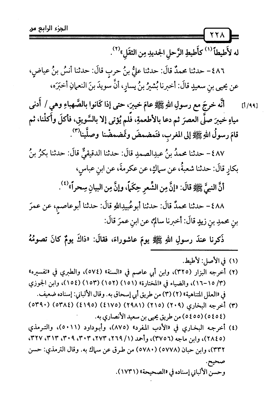 488 - حدثنا محمدٌ قالَ: حدثنا أبوعُبيدِاللهِ قالَ: حدثنا أبوعاصمٍ، عَنْ عمرَ بنِ محمدِ بنِ زيدٍ قالَ: أَخْبَرَنَا سالمٌ، عَنِ ابنِ عمرَ قالَ: