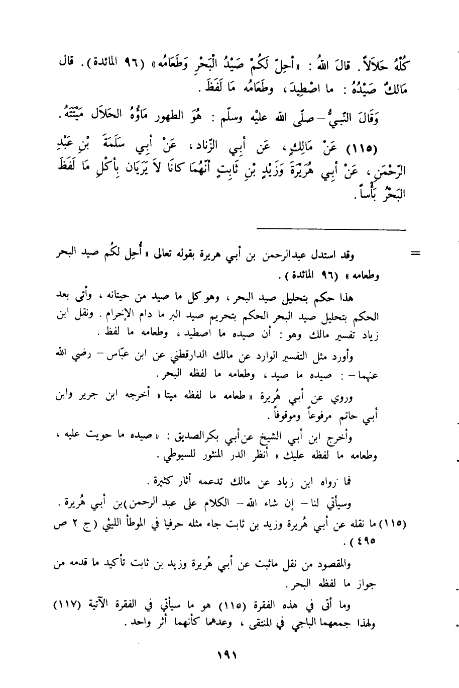 115- عن مالكٍ، عن أبي الزناد، عن أبي سلمة بن عبد الرحمن، عن أبي هريرة وزيد بن ثابتٍ أنهما كانا لا يريان بأكل ما لفظ البحر بأساً.