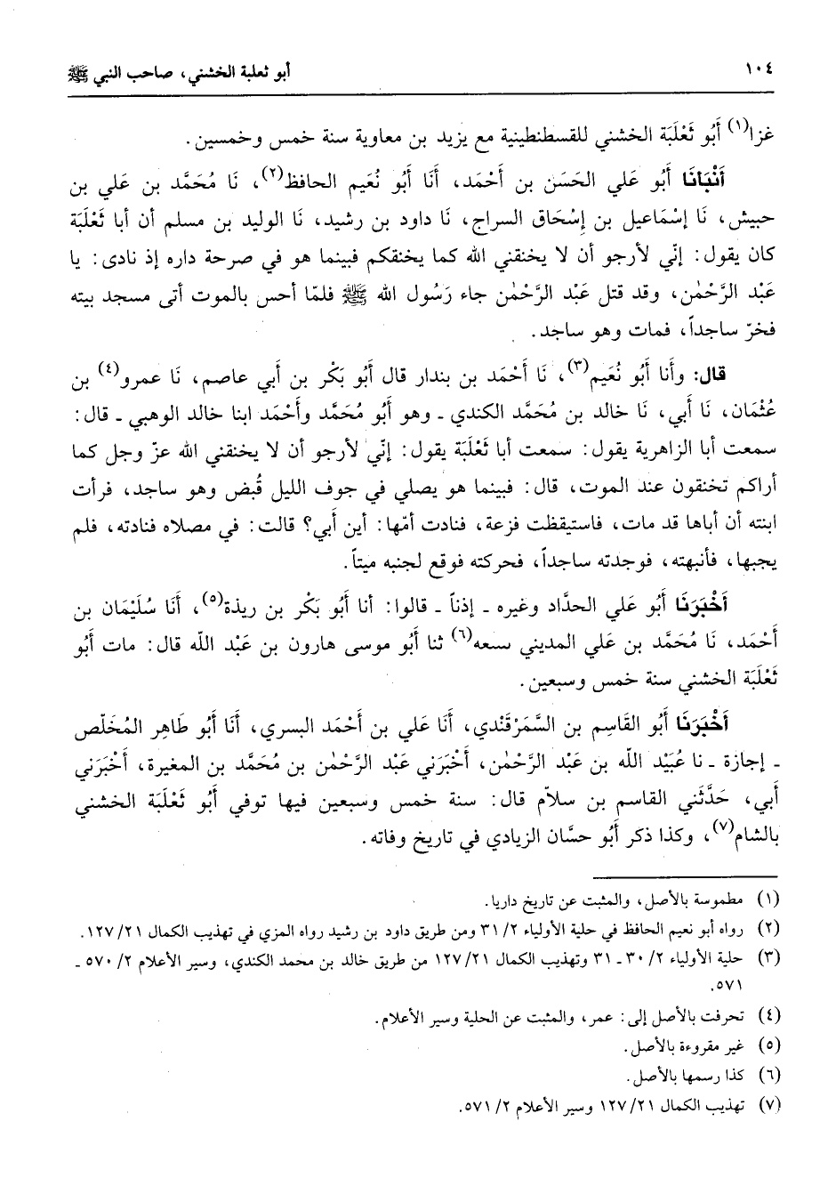 (7) تهذيب الكمال 21 / 127 وسير الاعلام 2 / 571