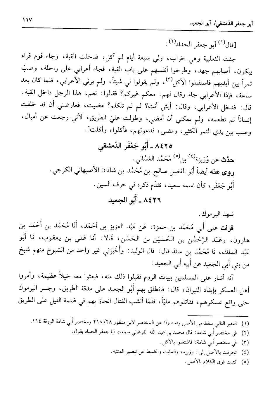 8425 - أبو جعفر الدمشقي حدث عن وريزة (4) بن (5) محمد الغساني روى عنه أيضا أبو الفضل صالح بن محمد بن شاذان الأصبهاني الكرجي أبو جعفر كأن اسمه سعيد تقدم ذكره في حرف السين