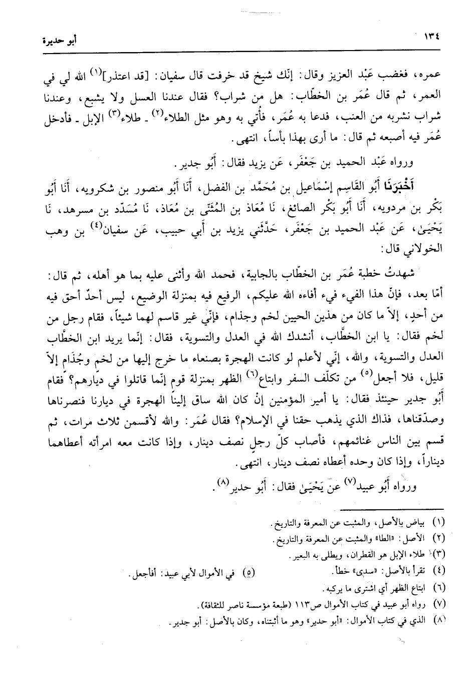 (8) الذي في كتاب الاموال: " أبو حدير " وهو ما أثبتناه وكان بالاصل: ابوجدير