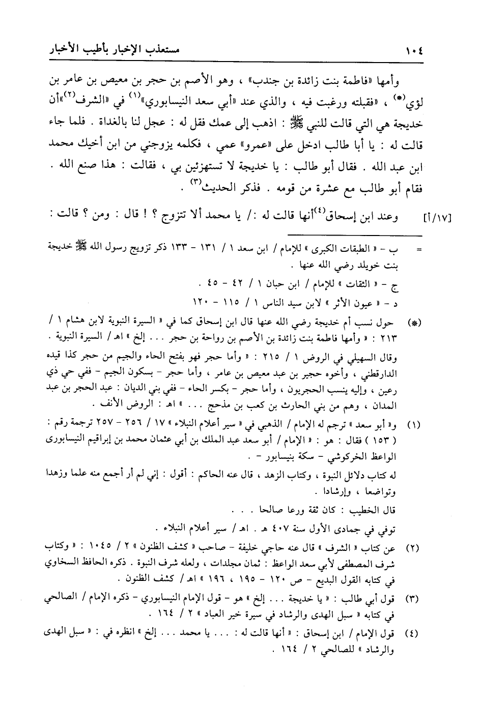 (3) قول أبي طالب: «يا خديجة ... إلخ» هو- قول الإمام النيسابوري- ذكره الإمام/ الصالحي في كتابه «سبل الهدى والرشاد في سيرة خير العباد» 2/ 164.