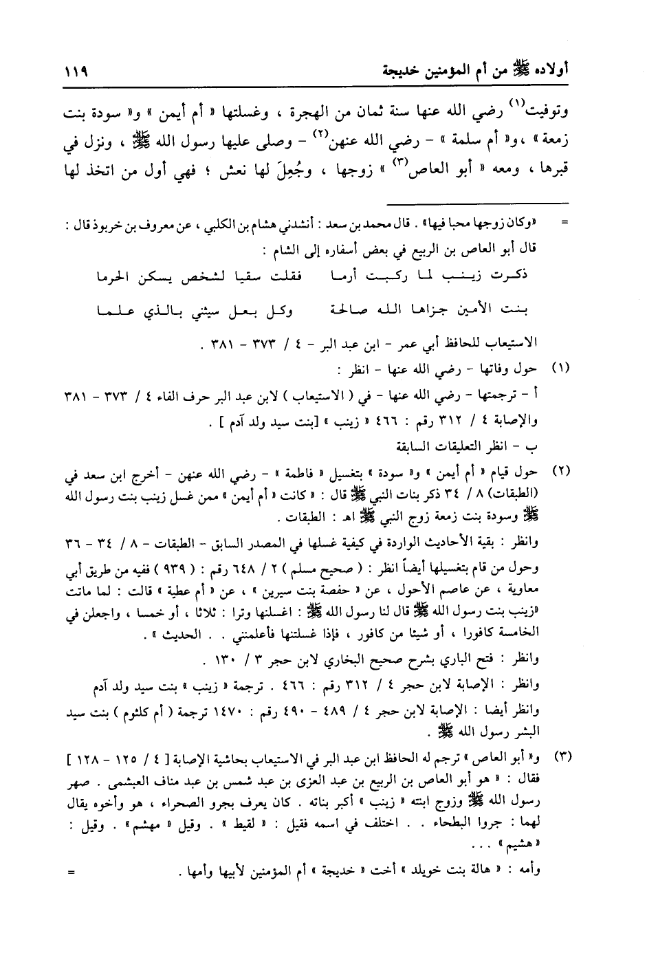 (1) حول وفاتها- رضي الله عنها- انظر: أ- ترجمتها- رضي الله عنها- في (الاستيعاب) لابن عبد البر حرف الفاء 4/ 373- 381 والإصابة 4/ 312 رقم: 466 «زينب» [بنت سيد ولد آدم] . ب- انظر التعليقات السابقة.