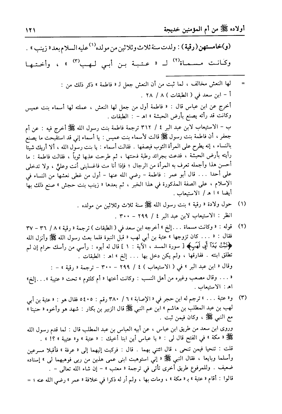 (1) حول ولادة «رقية» بنت رسول الله صلى الله عليه وسلّم سنة ثلاث وثلاثين من مولده. انظر: الاستيعاب لابن عبد البر 4/ 299- 300.
