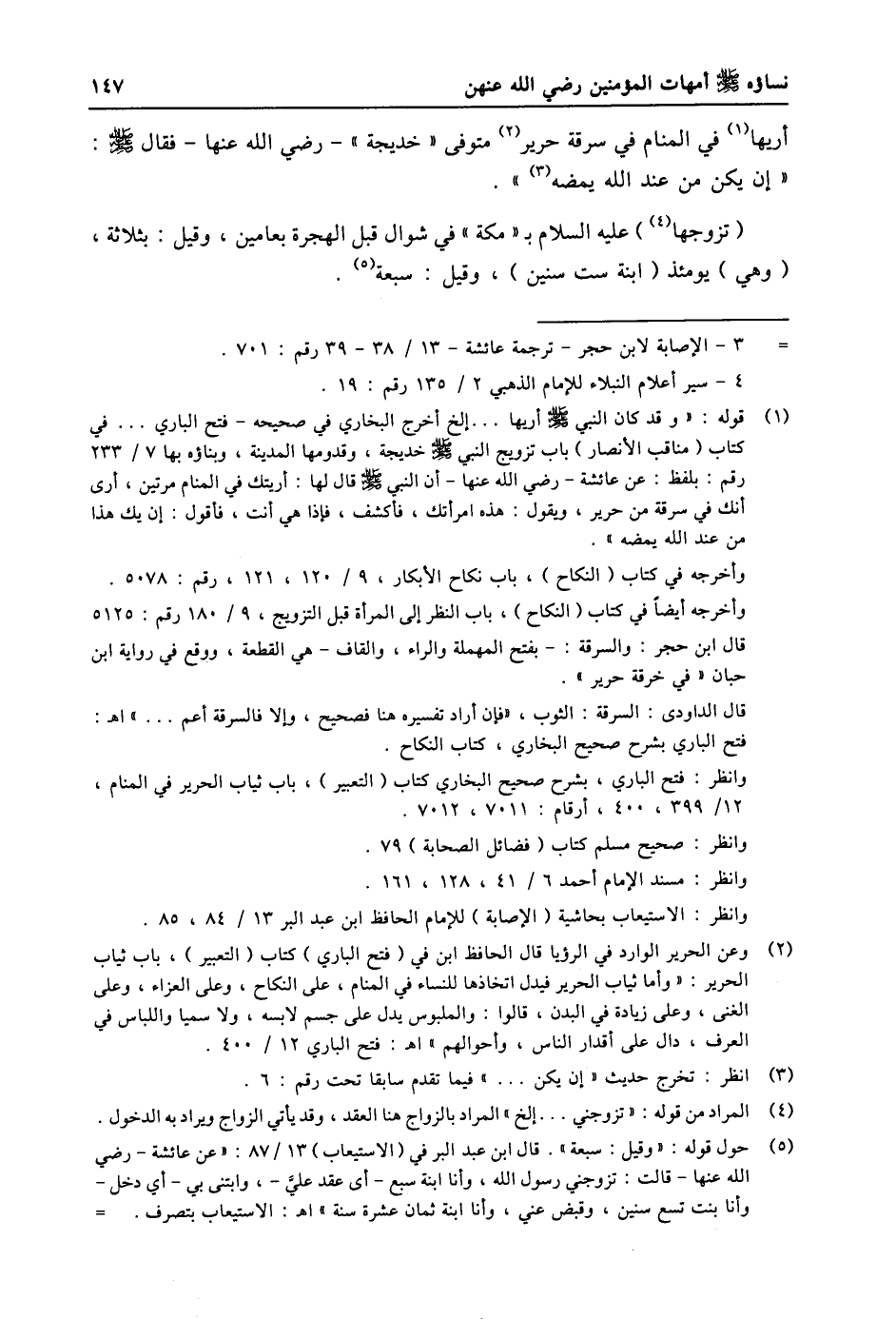 - 3- الإصابة لابن حجر- ترجمة عائشة- 13/ 38- 39 رقم: 701. 4- سير أعلام النبلاء للإمام الذهبي 2/ 135 رقم: 19.
