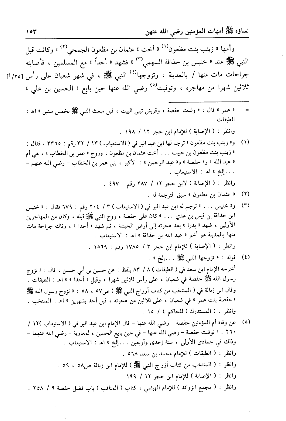(1) و «زينب بنت مظعون» ترجم لها ابن عبد البر في (الاستيعاب) 13/ 32 رقم: 3365، فقال: «زينب بنت مظعون بن حبيب ... أخت عثمان بن مظعون، وزوج «عمر بن الخطاب» ، هي أم «عبد الله» و «حفصة» و «عبد الرحمن» : الأكبر، بنى عمر بن الخطاب- رضي الله عنهم- ... إلخ» اه: الاستيعاب. وانظر: (الإصابة) لابن حجر 12/ 287 رقم: 497.
