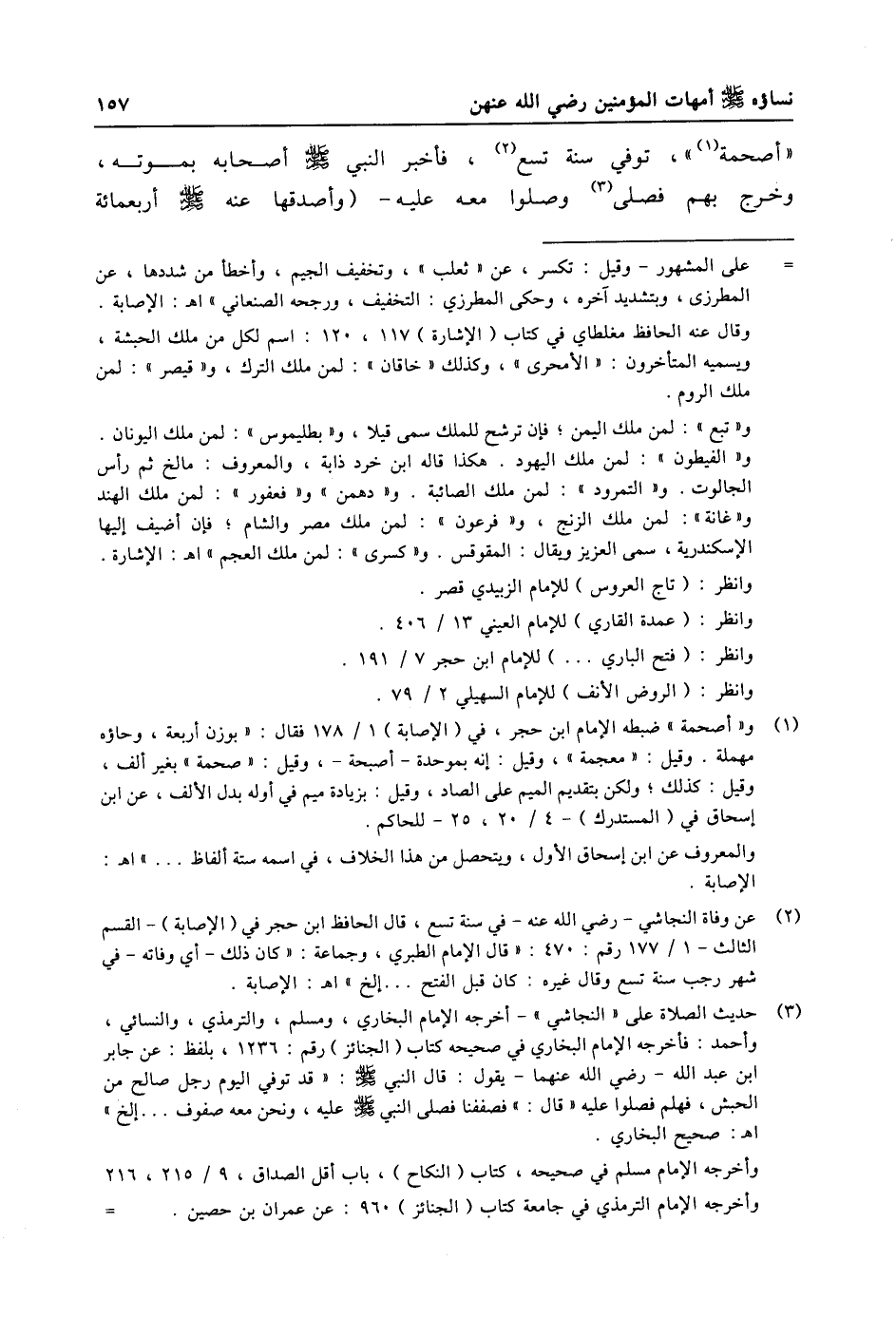 (2) عن وفاة النجاشي- رضي الله عنه- في سنة تسع، قال الحافظ ابن حجر في (الإصابة) - القسم الثالث- 1/ 177 رقم: 470: «قال الإمام الطبري، وجماعة: «كان ذلك- أي وفاته- في شهر رجب سنة تسع وقال غيره: كان قبل الفتح ... إلخ» اه: الإصابة.