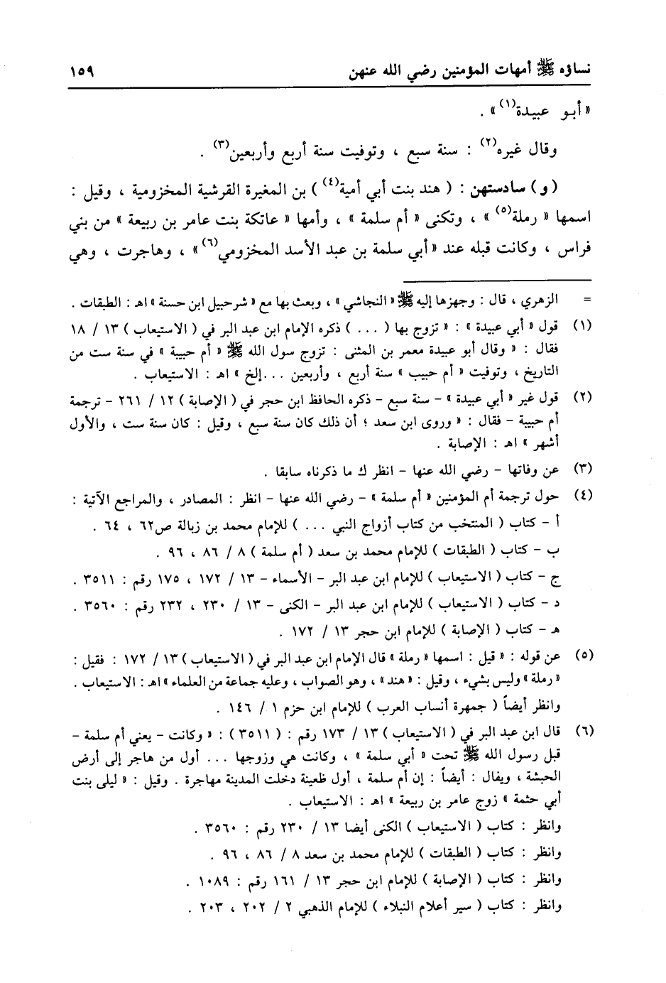 (1) قول «أبي عبيدة» : «تزوج بها ( ... ) ذكره الإمام ابن عبد البر في (الاستيعاب) 13/ 18 فقال: «وقال أبو عبيدة معمر بن المثنى: تزوج رسول الله صلى الله عليه وسلّم «أم حبيبة» في سنة ست من التاريخ، وتوفيت «أم حبيب» سنة أربع، وأربعين ... إلخ» اه: الاستيعاب.