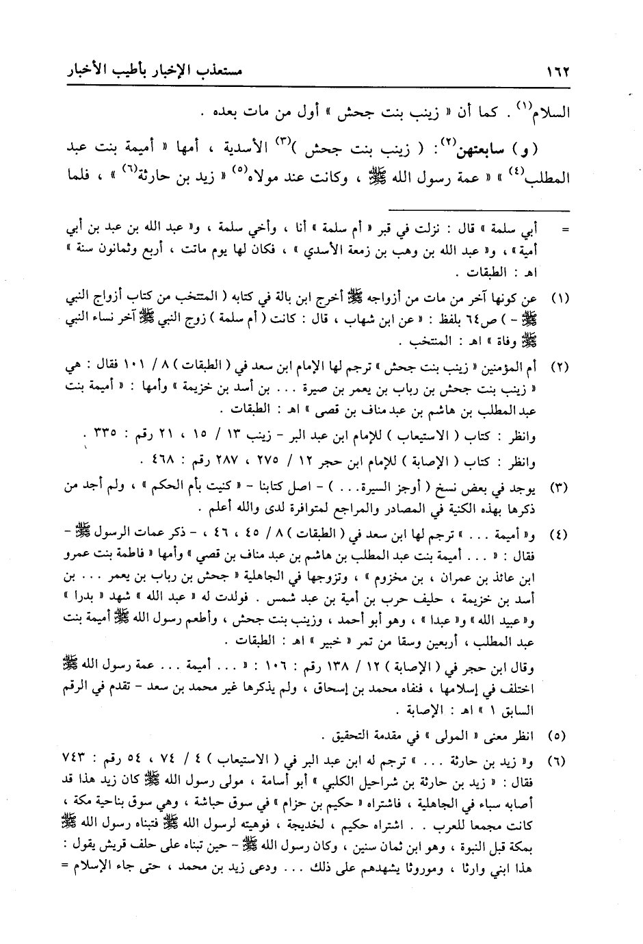 (2) أم المؤمنين «زينب بنت جحش» ترجم لها الإمام ابن سعد في (الطبقات) 8/ 101 فقال: هي «زينب بنت جحش بن رباب بن يعمر بن صيرة ... بن أسد بن خزيمة» وأمها: «أميمة بنت عبد المطلب بن هاشم بن عبد مناف بن قصى» اه: الطبقات. وانظر: كتاب (الاستيعاب) للإمام ابن عبد البر- زينب 13/ 15، 21 رقم: 335. وانظر: كتاب (الإصابة) للإمام ابن حجر 12/ 275، 287 رقم: 468.