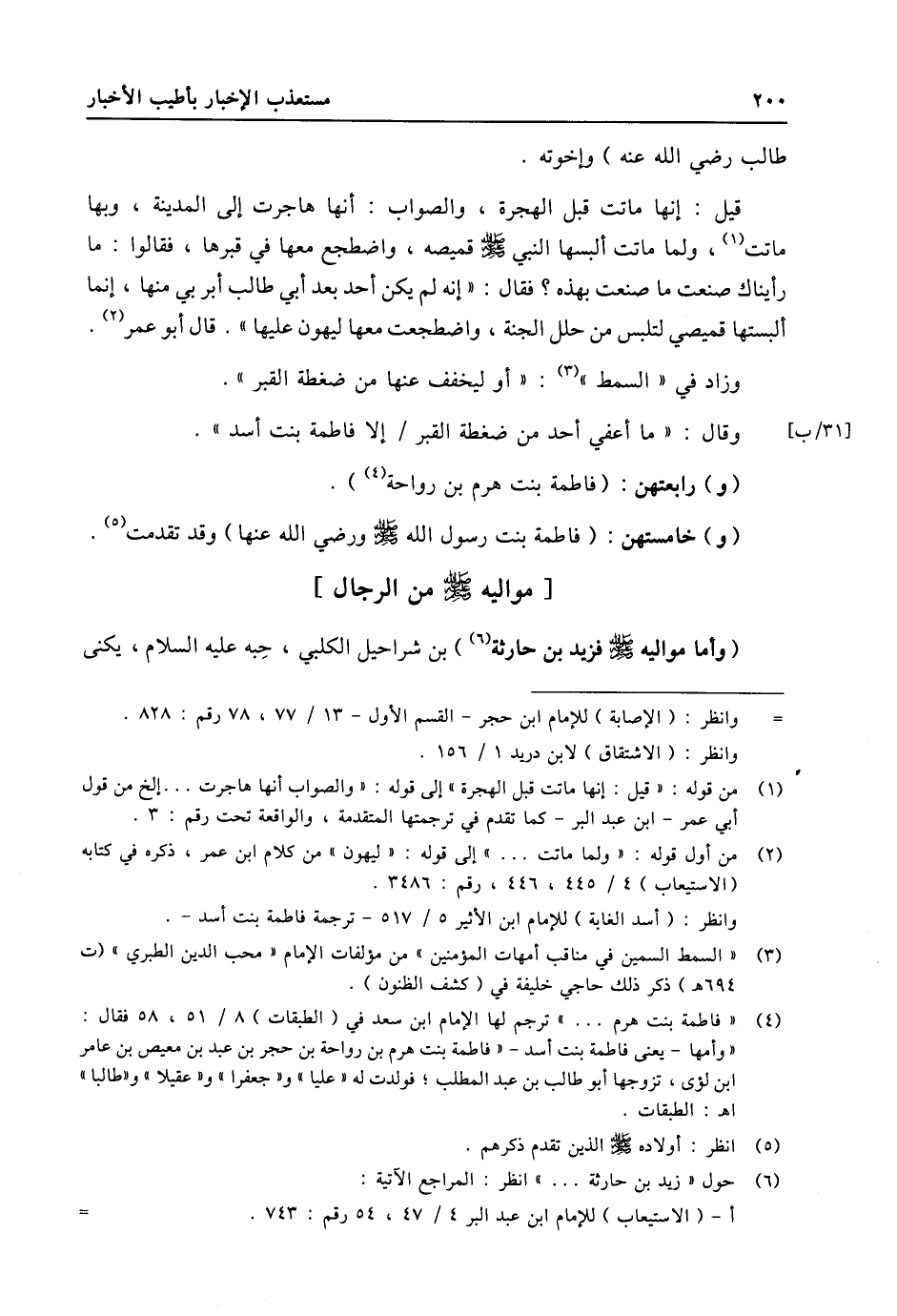 (6) حول «زيد بن حارثة ... » انظر: المراجع الاتية: أ- (الاستيعاب) للإمام ابن عبد البر 4/ 47، 54 رقم: 743.