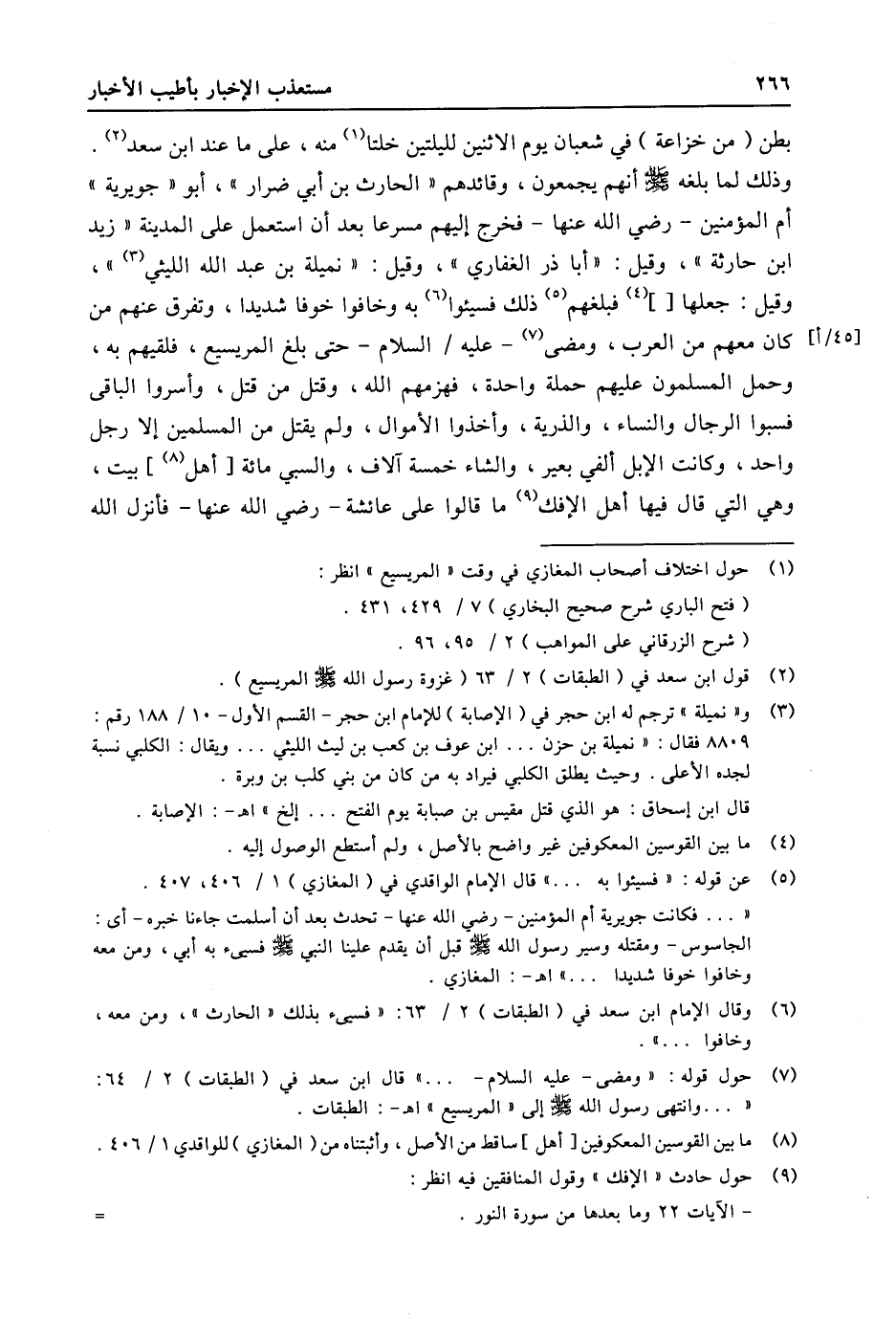 (1) حول اختلاف أصحاب المغازي في وقت «المريسيع» انظر: (فتح الباري شرح صحيح البخاري) 7/ 429، 431. (شرح الزرقاني على المواهب) 2/ 95، 96.