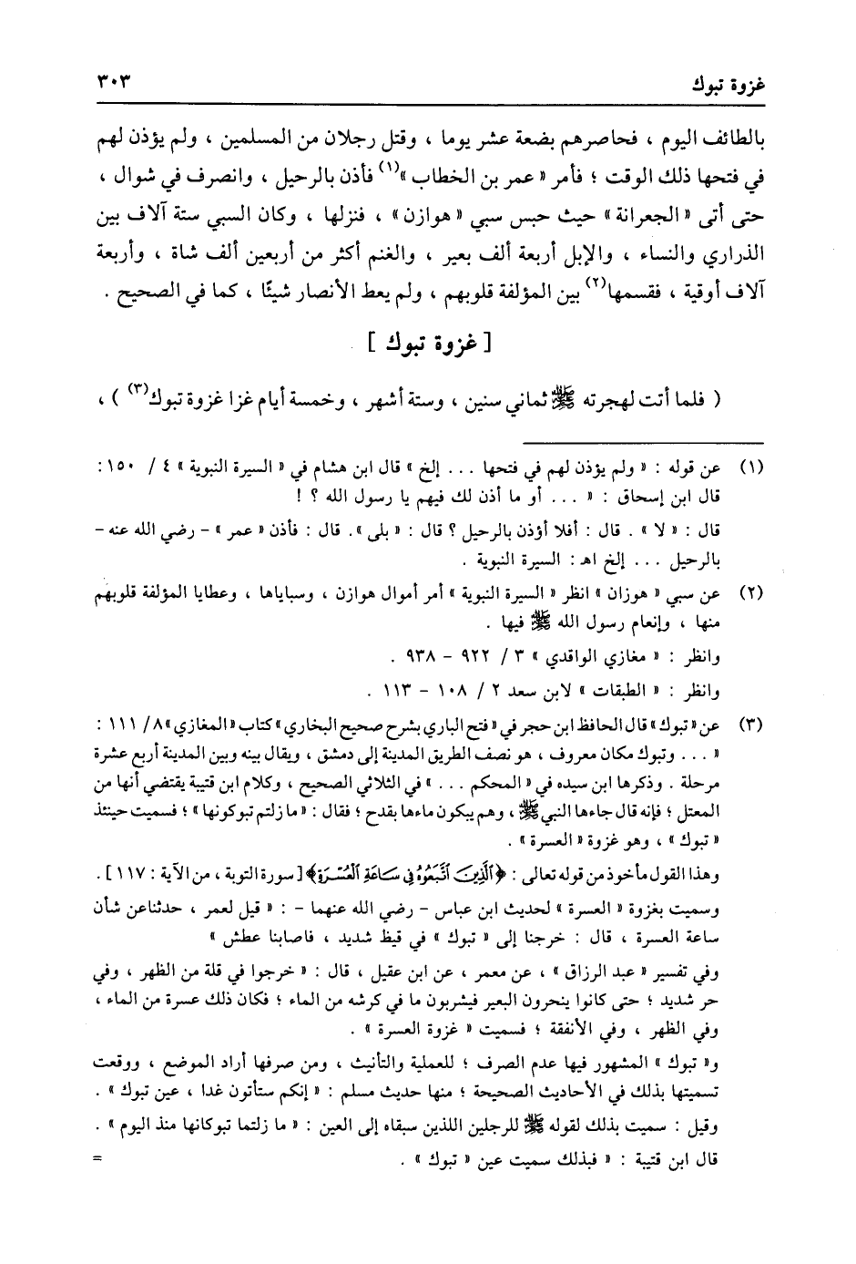 (1) عن قوله: «ولم يؤذن لهم في فتحها ... إلخ» قال ابن هشام في «السيرة النبوية» 4/ 150: قال ابن إسحاق: « ... أو ما أذن لك فيهم يا رسول الله؟! قال: «لا» . قال: أفلا أؤذن بالرحيل؟ قال: «بلى» . قال: فأذن «عمر» - رضي الله عنه- بالرحيل ... إلخ اه: السيرة النبوية.