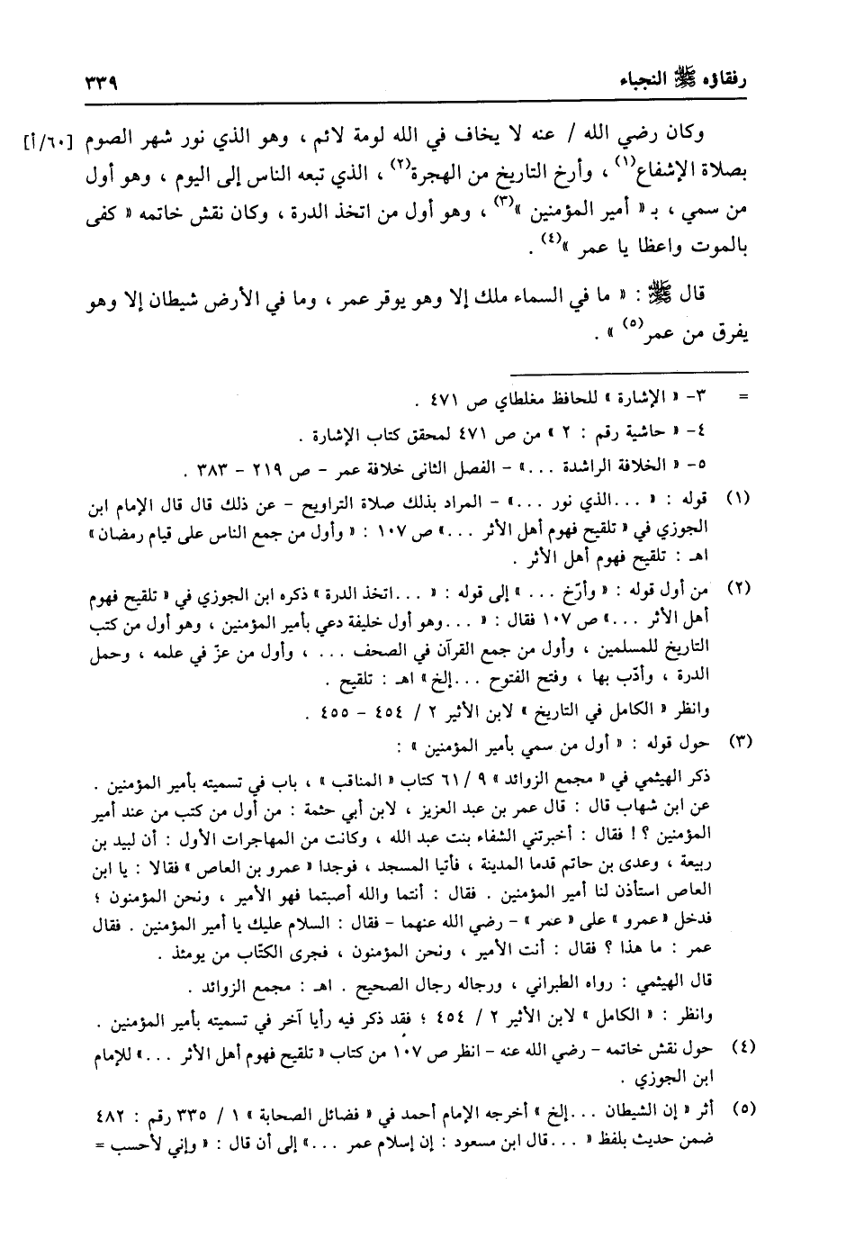 - 3- «الإشارة» للحافظ مغلطاي ص 471. 4- «حاشية رقم: 2» من ص 471 لمحقق كتاب الإشارة. 5- «الخلافة الراشدة ... » - الفصل الثانى خلافة عمر- ص 219- 383.