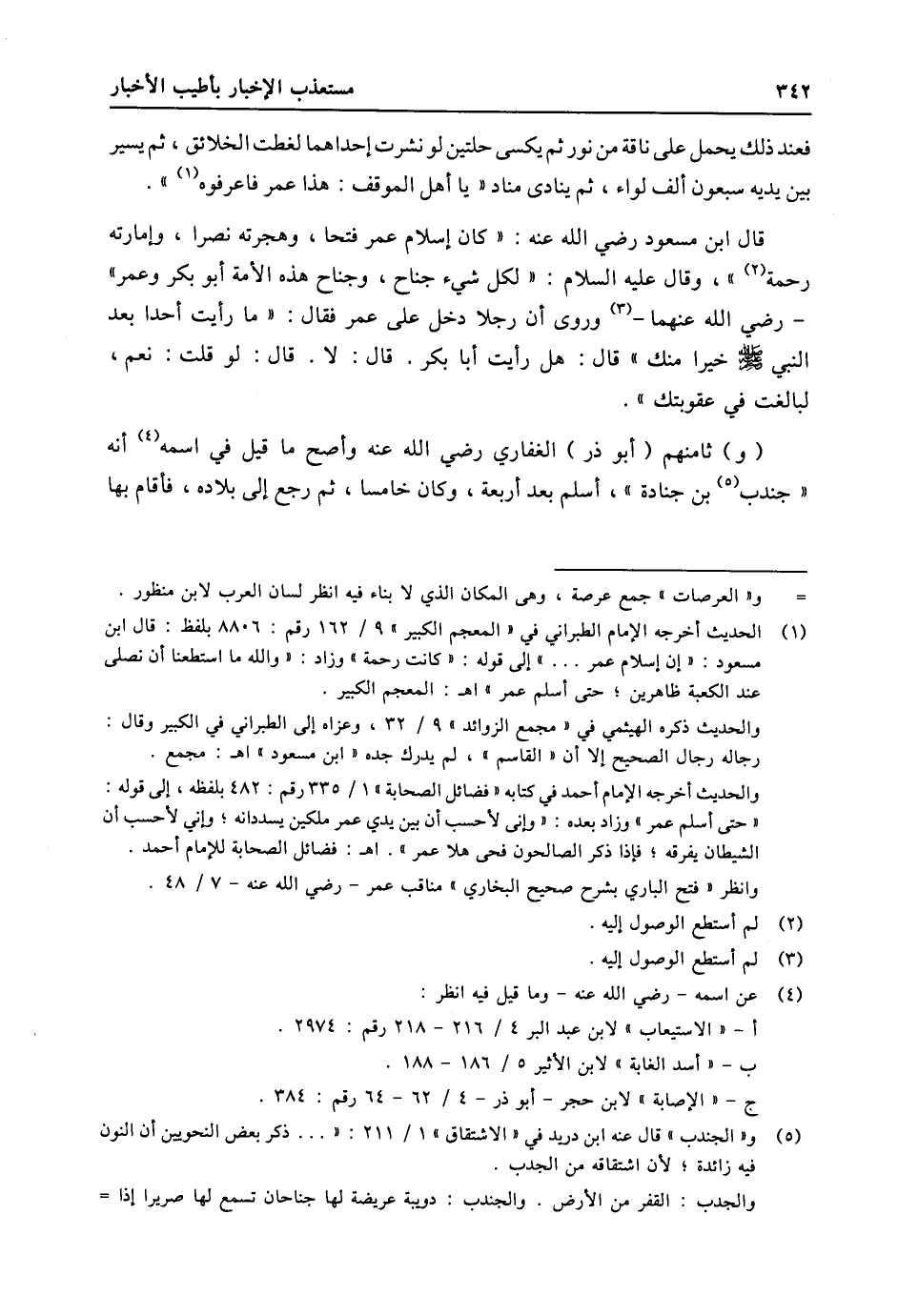 (4) عن اسمه- رضي الله عنه- وما قيل فيه انظر: أ- «الاستيعاب» لابن عبد البر 4/ 216- 218 رقم: 2974. ب- «أسد الغابة» لابن الأثير 5/ 186- 188. ج- «الإصابة» لابن حجر- أبو ذر- 4/ 62- 64 رقم: 384.