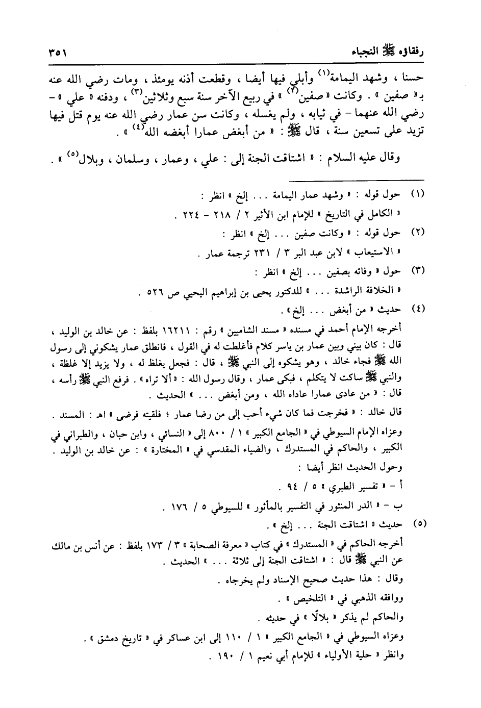 (3) حول «وفاته بصفين ... إلخ» انظر: «الخلافة الراشدة ... » للدكتور يحيى بن إبراهيم اليحيى ص 526.