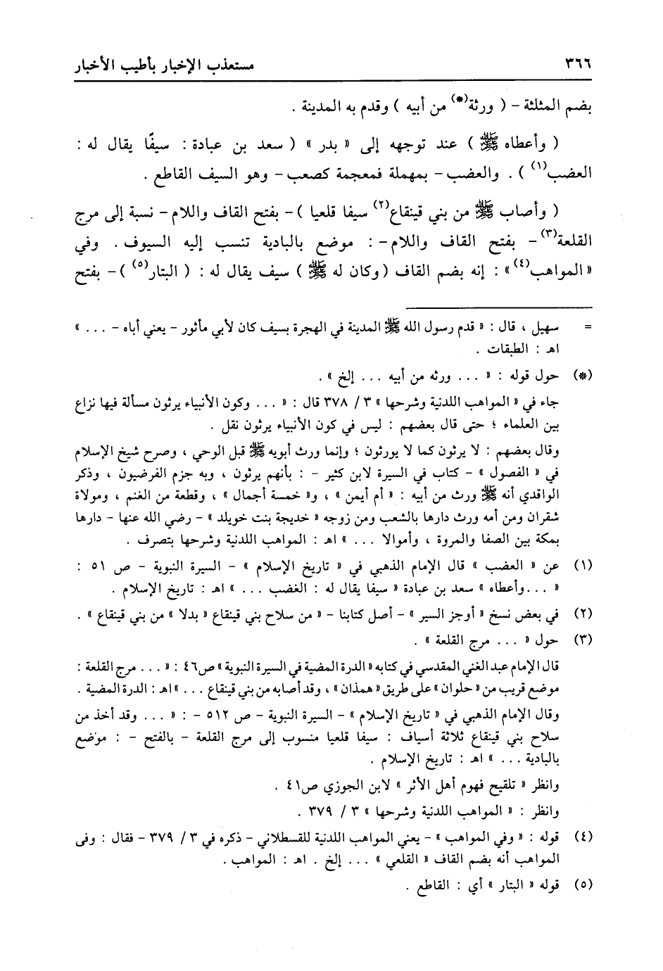 (1) عن «العضب» قال الإمام الذهبي في «تاريخ الإسلام» - السيرة النبوية- ص 51: « ... وأعطاه» سعد بن عبادة «سيفا يقال له: الغضب ... » اه: تاريخ الإسلام.