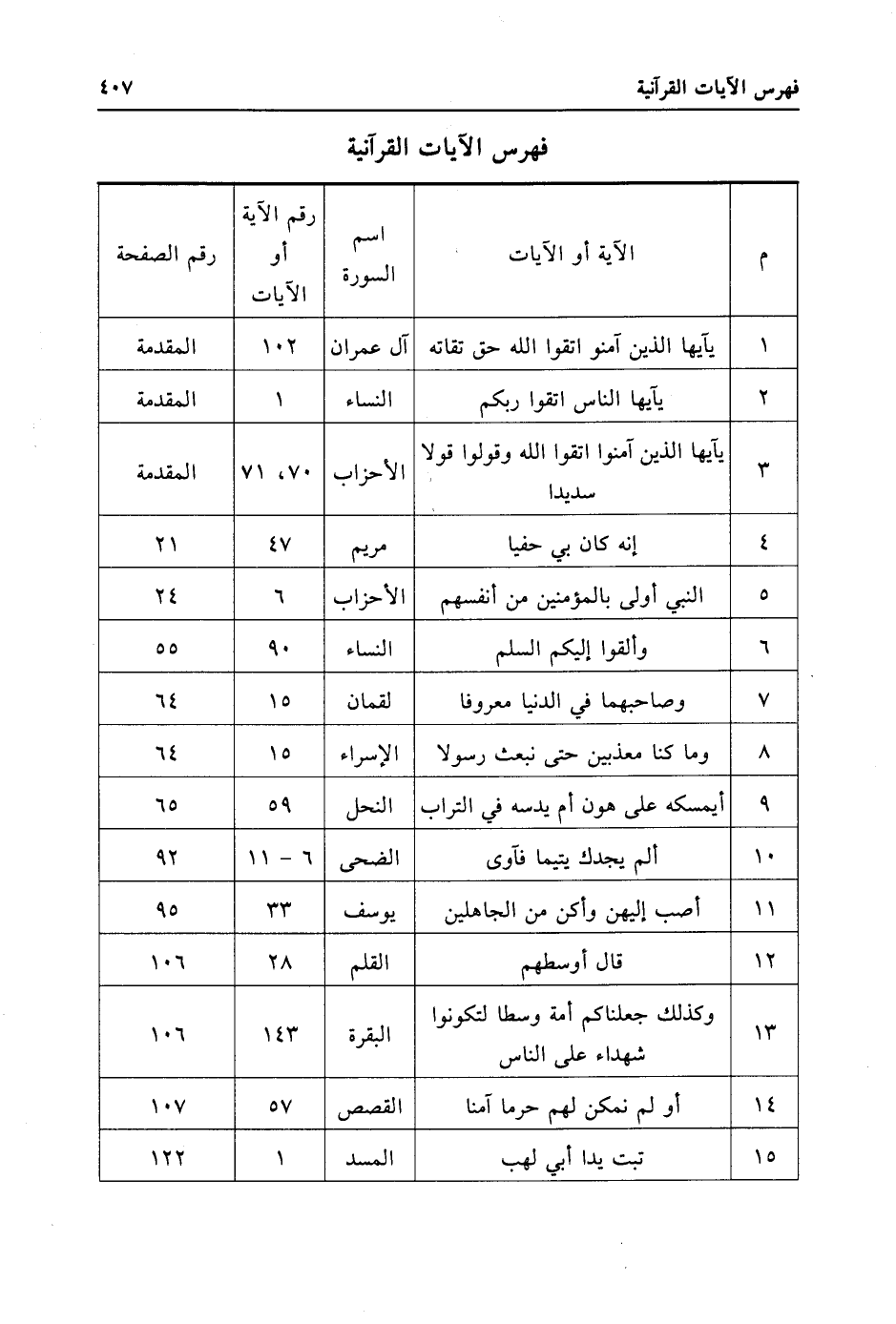 م/ الاية أو الايات/ اسم السورة/ رقم الاية أو الايات/ رقم الصفحة